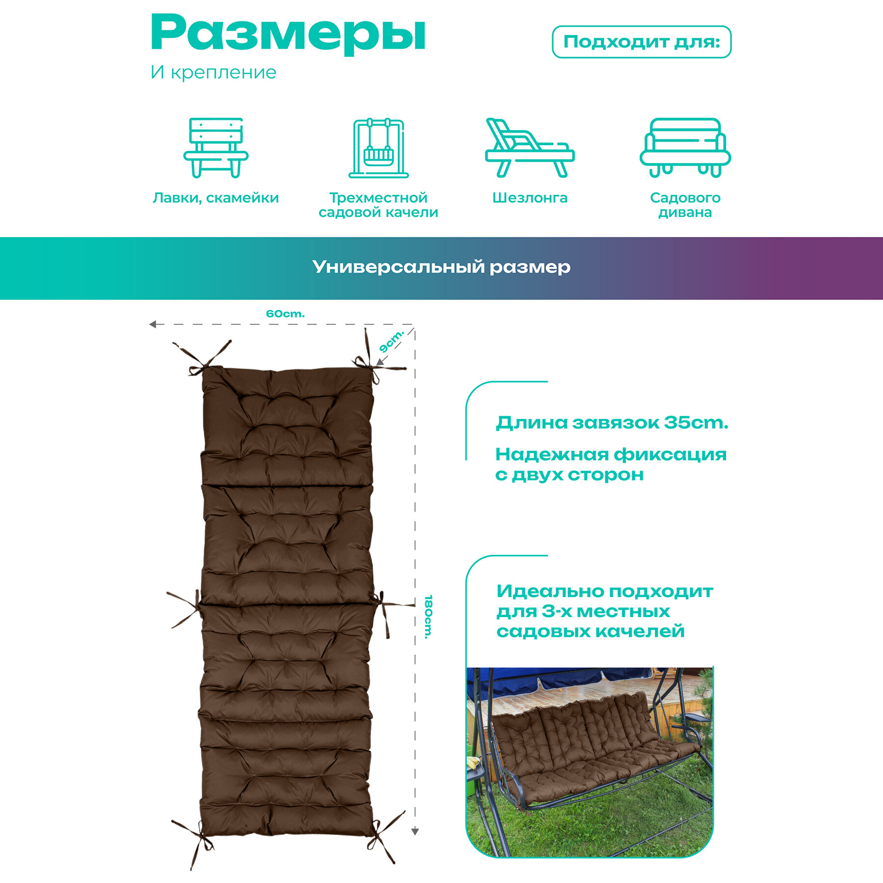 СохранитьМатрас для садовых качелей Bio-Line, матрас для шезлонга, на кушетку, 60х180 см,влагостойкий, на завязках шоколад интересное: