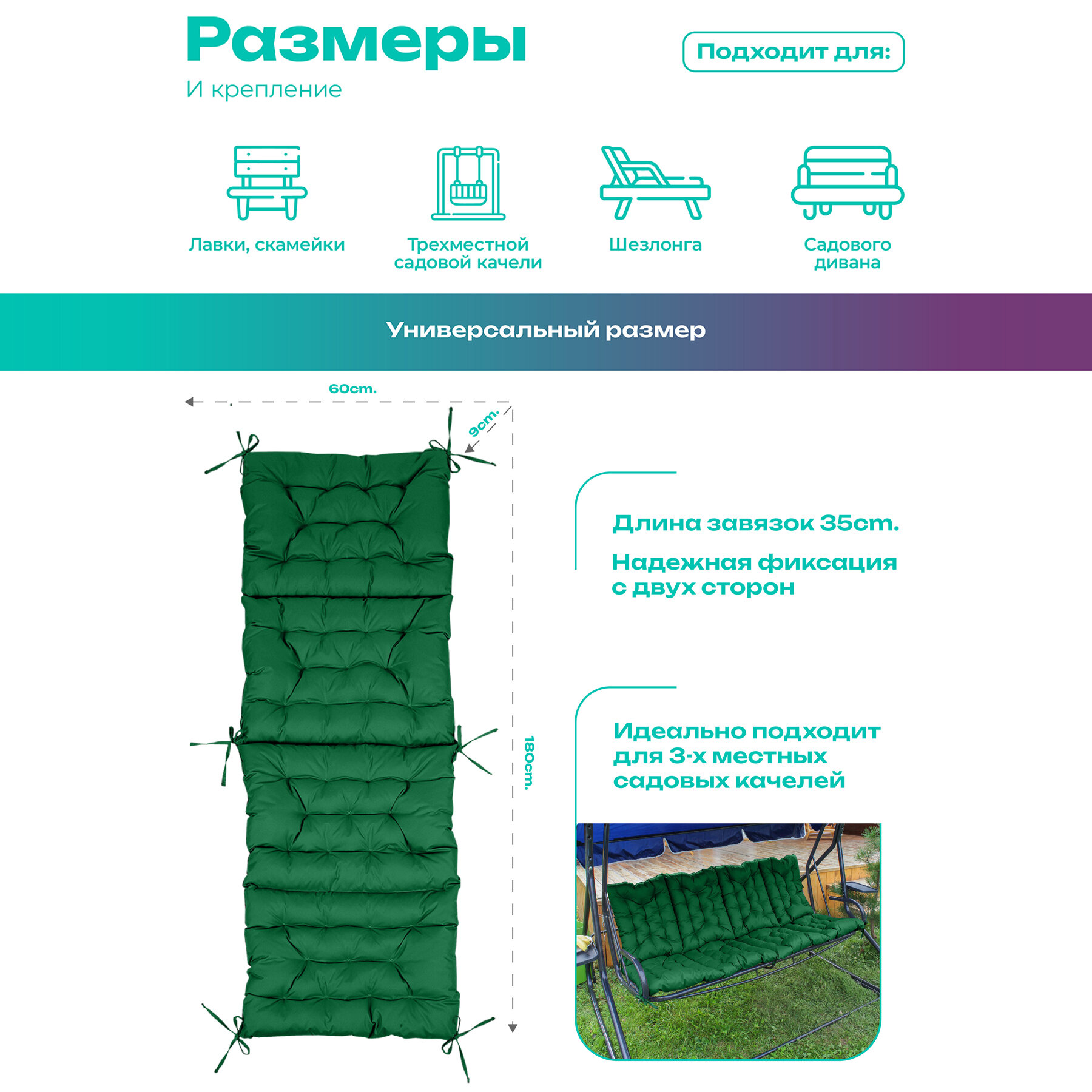 Купить Матрас для садовых качелей Bio-Line, матрас для шезлонга, на кушетку, 60х180 см,влагостойкий, на завязках зеленый