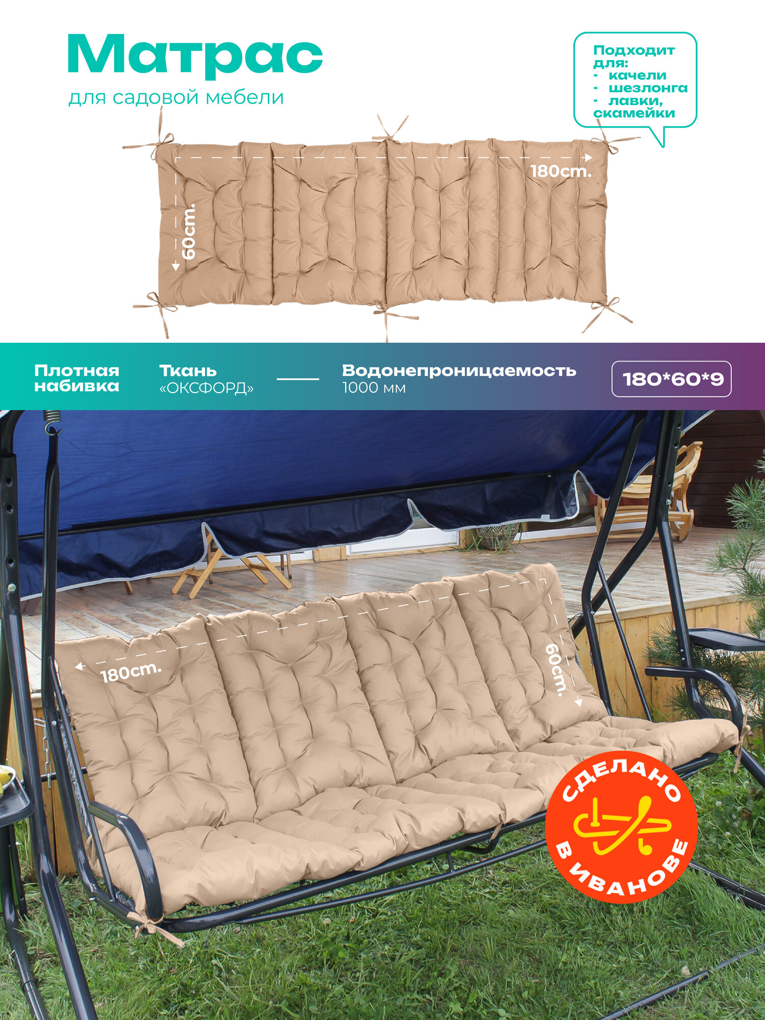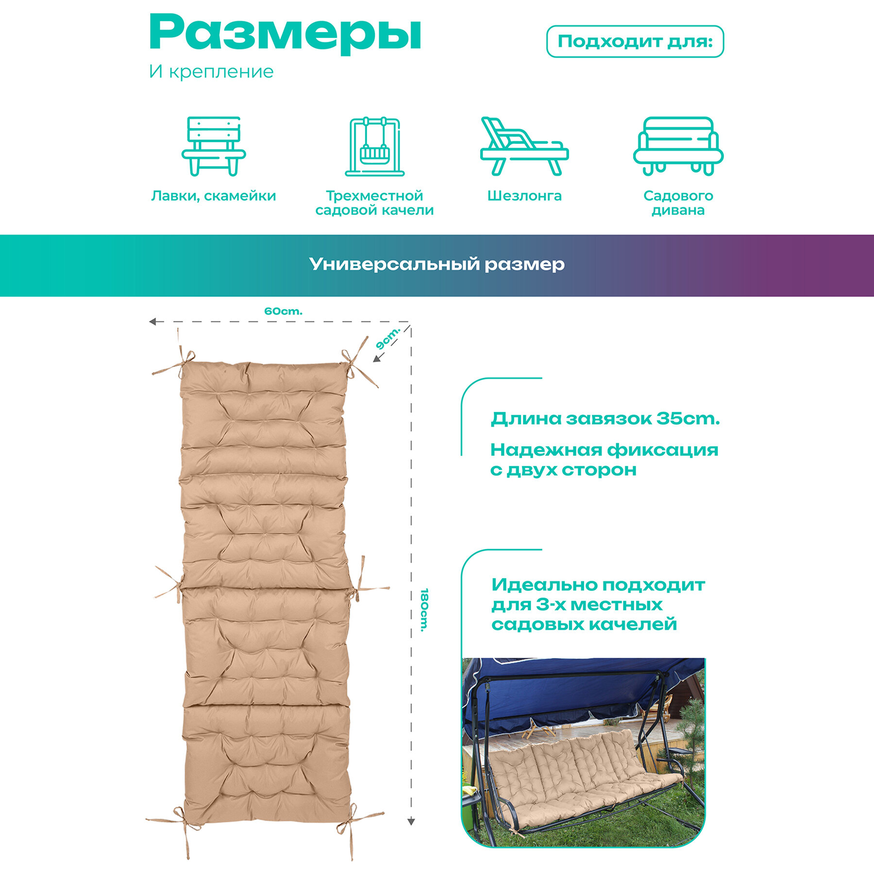 СохранитьМатрас для садовых качелей Bio-Line, матрас для шезлонга, на кушетку, 60х180 см,влагостойкий, на завязках бежевый интересное: