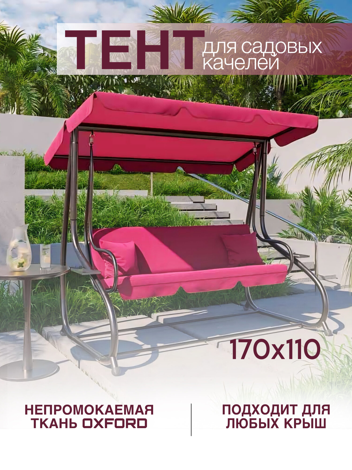 Тент крыша для садовых качелей 165х112 водонепроницаемый, бордовый