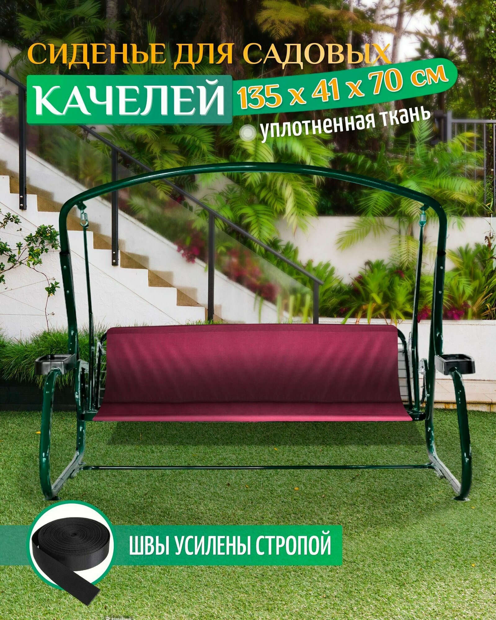 Сиденье для садовых качелей 120х50х50см (бордовый)