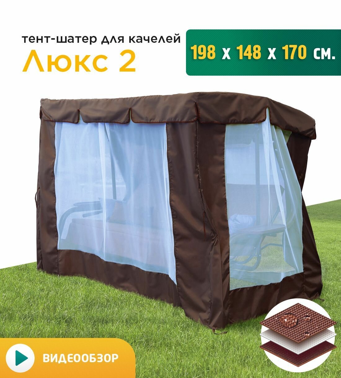 Купить Тент-шатер с сеткой для качелей Люкс 2 (198х148х170 см) коричневый