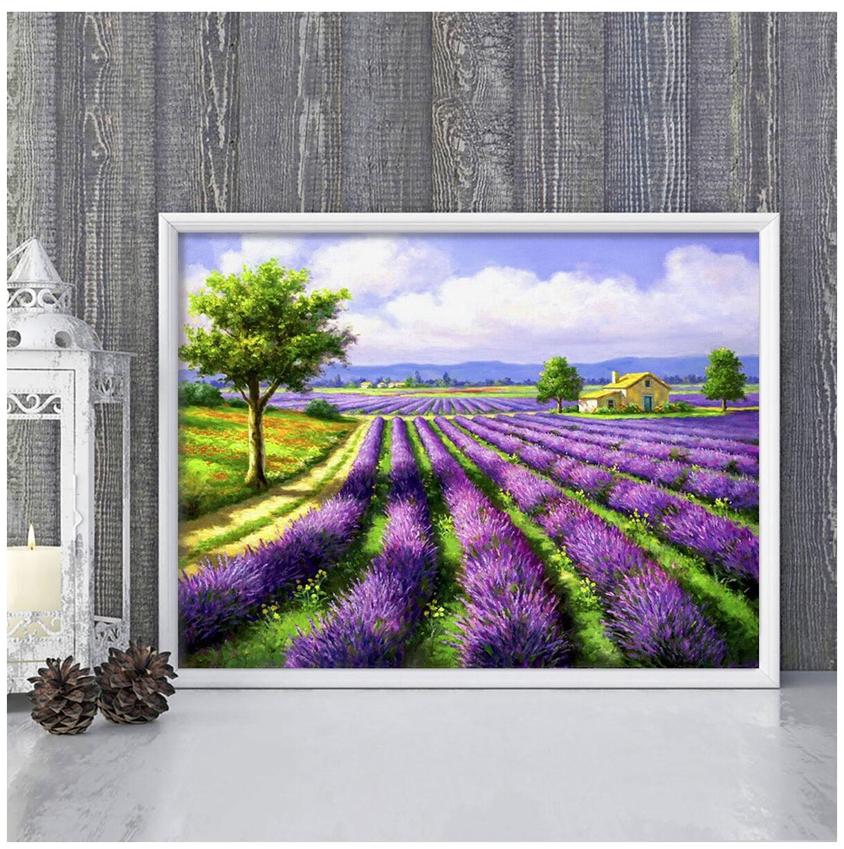 Купить Картина стразами "Лавандовое поле" (АЖ-1338)
