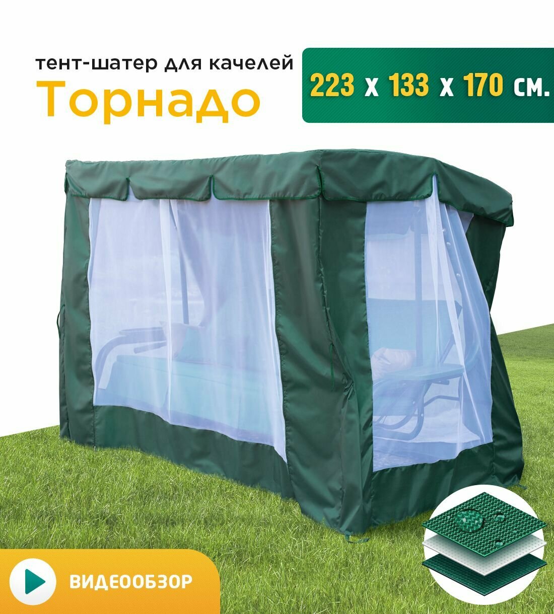 Тент-шатер с сеткой для качелей Торнадо+10 (238х145х170 см) зеленый