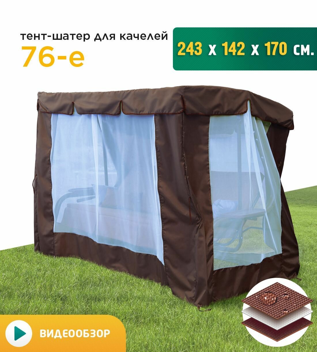 Ниже Вы можете прочитать отзывы на Тент-шатер с сеткой для качелей 76-е (243х142х170 см) коричневый, ознакомится с подробными характеристиками, посмотреть интересные обзоры и фотографии на Тент-шатер с сеткой для качелей 76-е (243х142х170 см) коричневый.