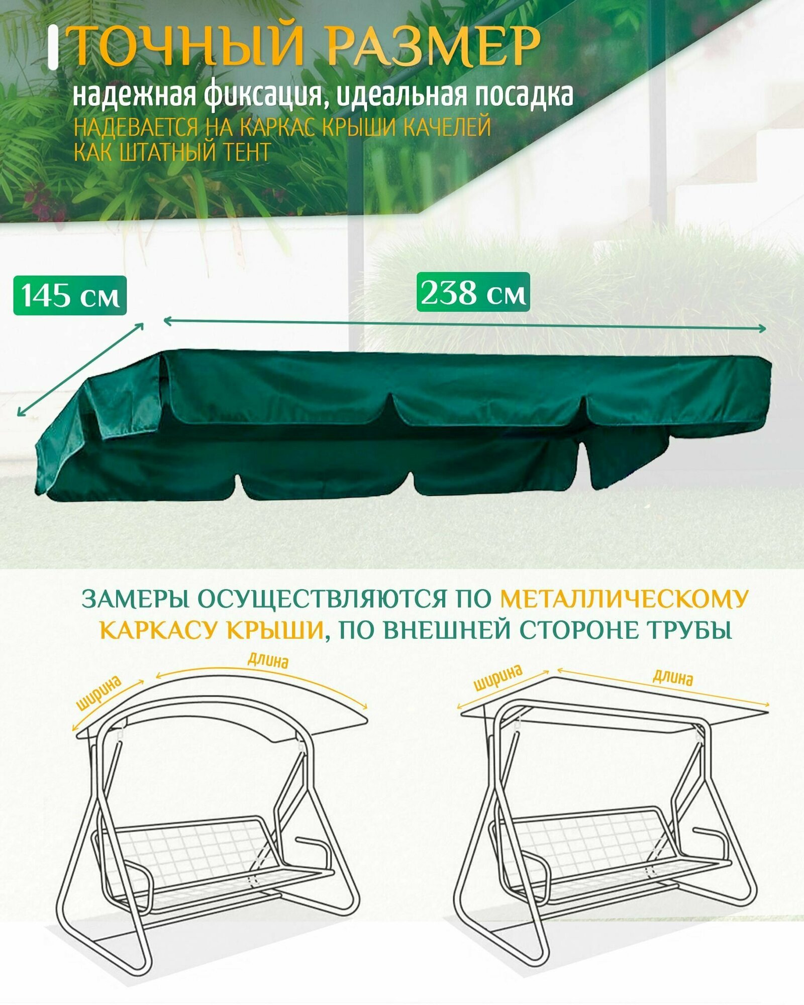 | Дополнительная информация | Тент - крыша для садовых качелей из уплотненной ткани Оксфорд 240D |