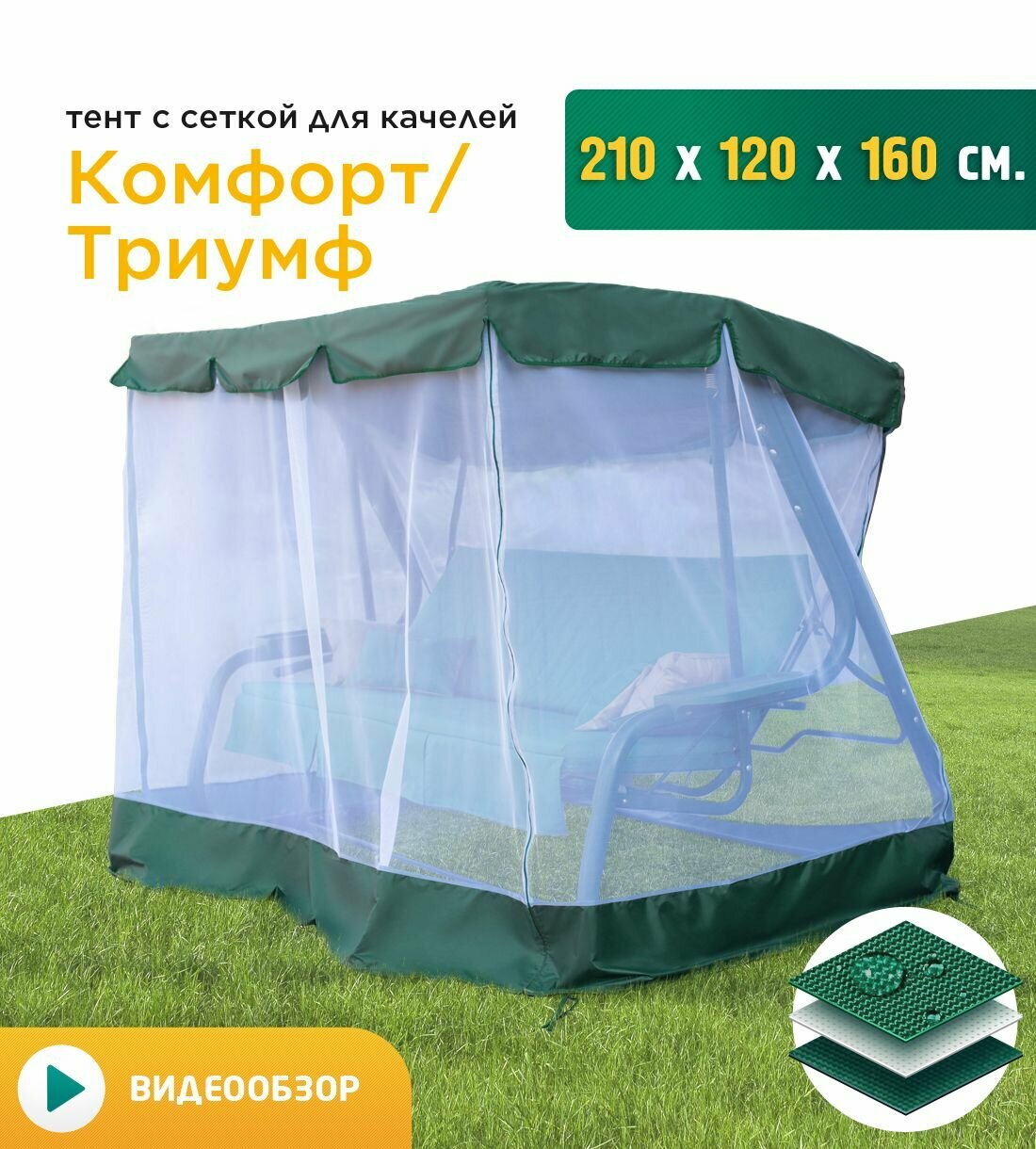СохранитьТент с сеткой для качелей Комфорт/Триумф (210х120х160 см) зеленый интересное: