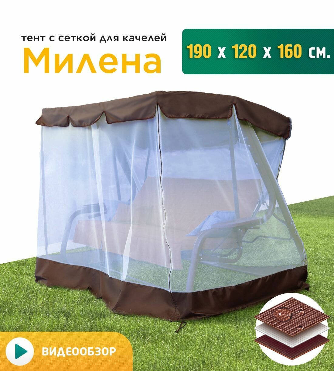 СохранитьТент с сеткой для качелей Милена (190х120х160 см) коричневый интересное:
