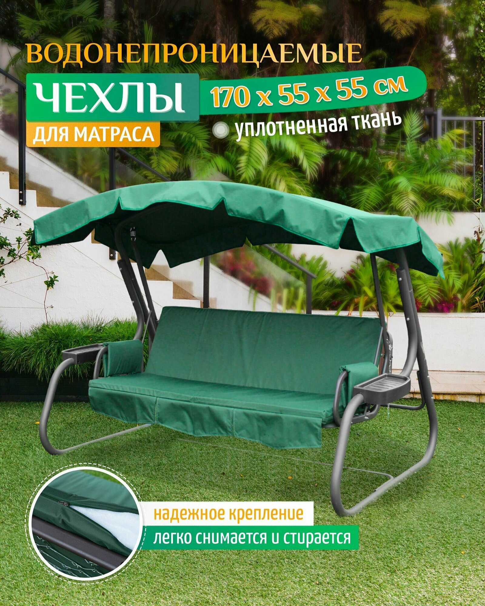 Чехол водонепроницаемый на матрас для качелей (170х55х55 см) зеленый интересное: