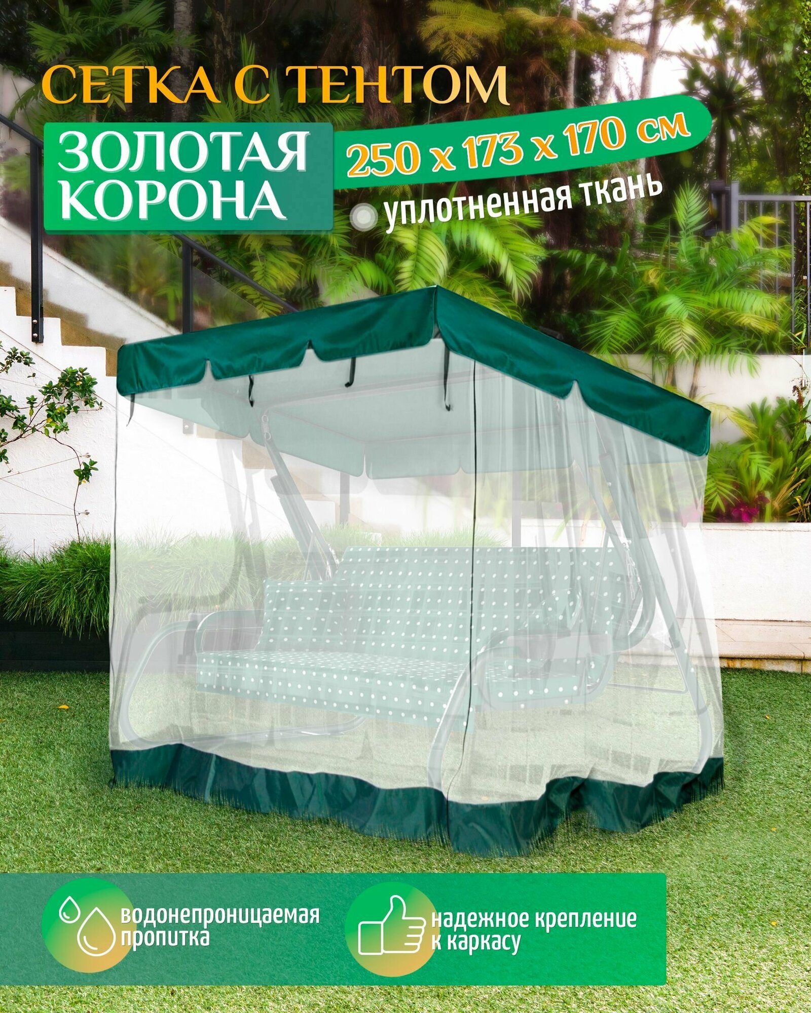 Купить Тент с москитной сеткой для качелей Золотая корона (250х173х170 см) зеленый