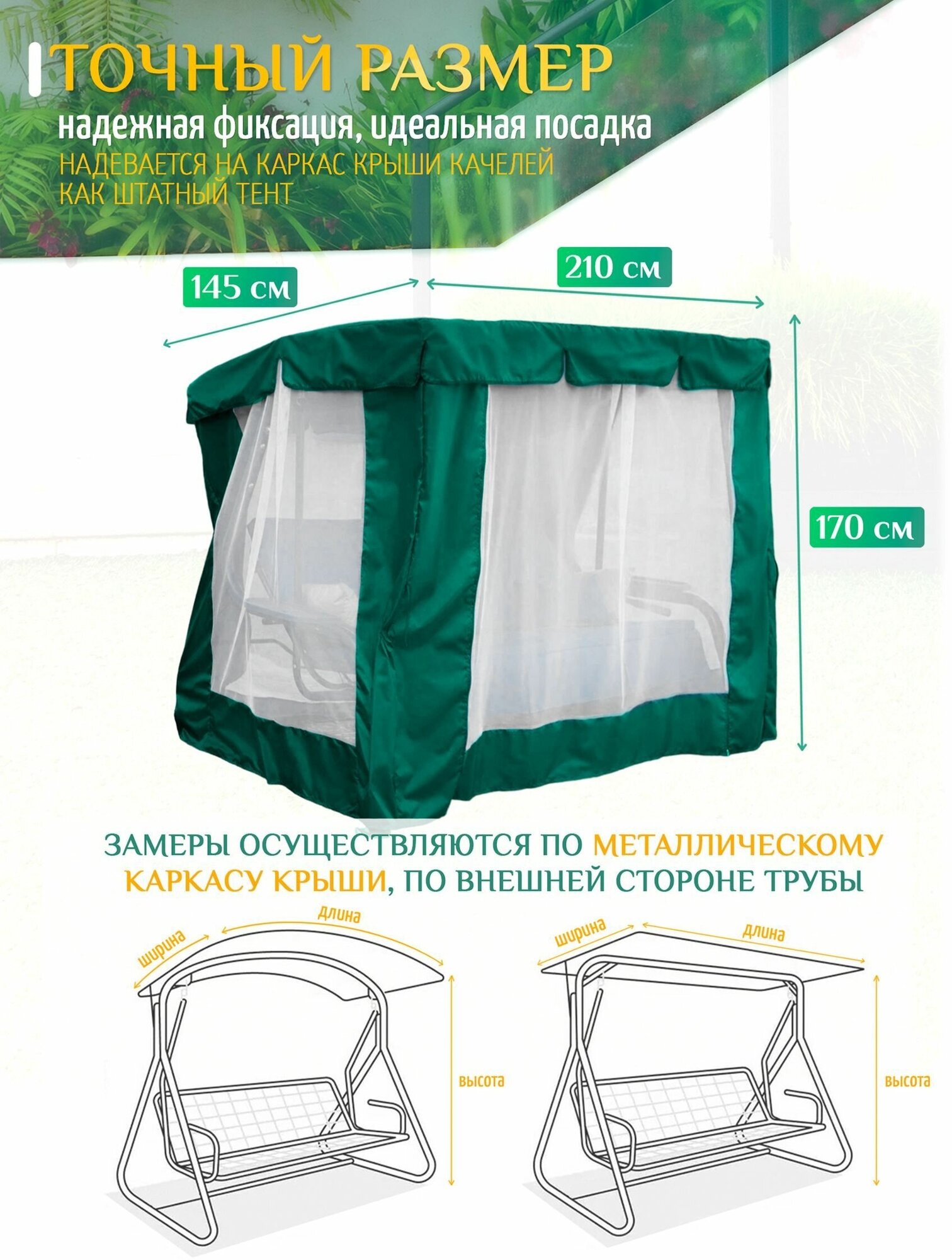| Дополнительная информация | Тент - шатер с москитной сеткой для садовых качелей из уплотненной ткани Оксфорд 240D и прочной сеткой |