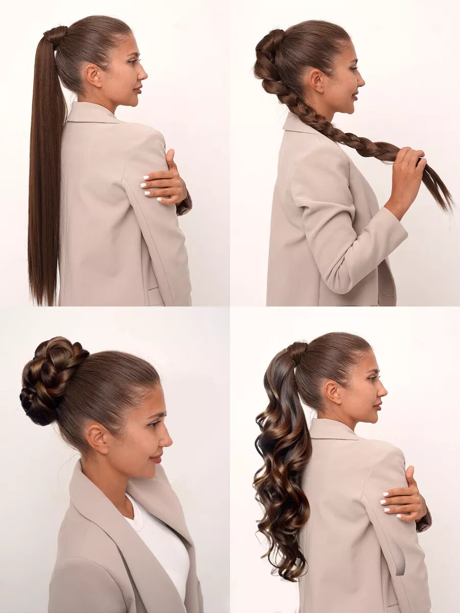 Шиньон накладной хвост на крабе шоколадный накладные волосы 60 см 150гр