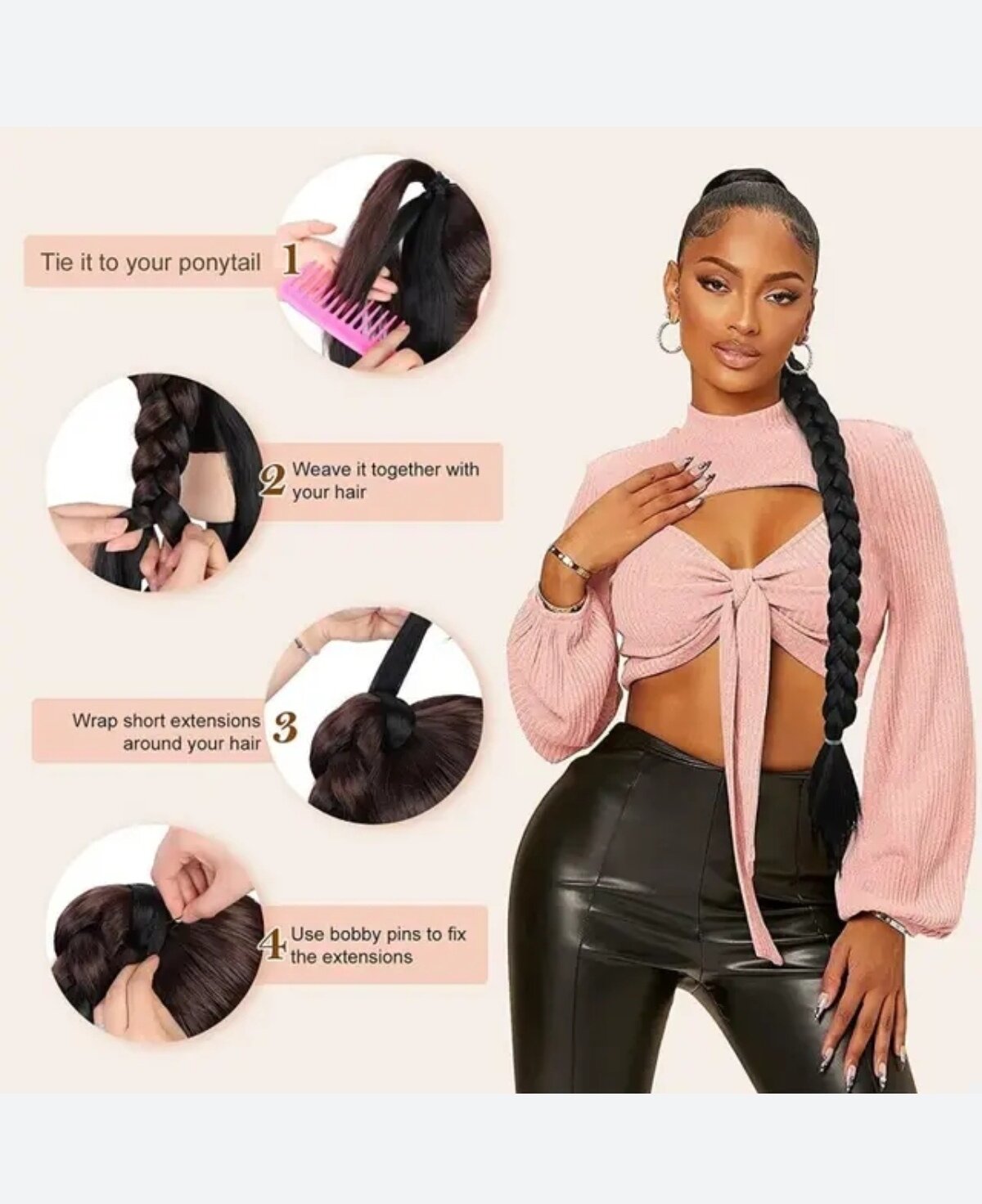 Шиньон. Хвост - коса на резинке чёрный 80см интересное: