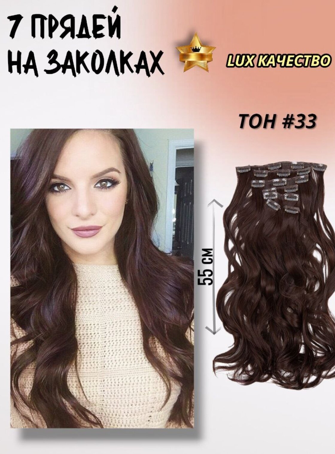 Пряди для наращивания волос. 7штук длиной 60см
