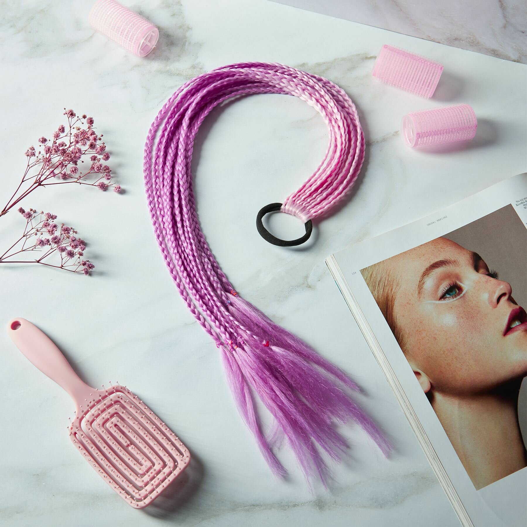| Подробная комплектация | Цветные пряди на резинке, 12 косичек, 60см |