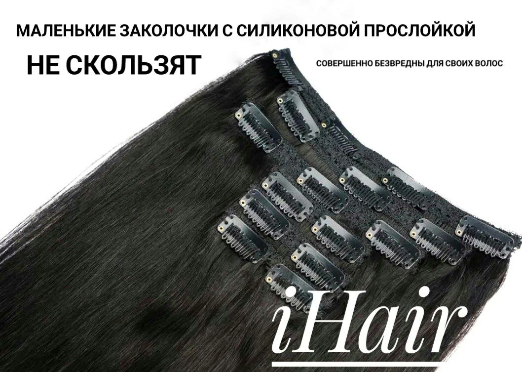 Натуральные волосы на заколках №4А, длина 50см, 100 г.