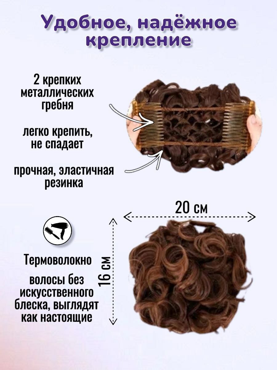 Шиньон накладной для волос на заколках. Коричневый 4/30