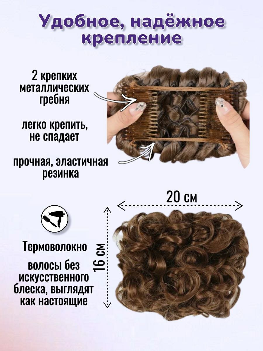 Шиньон накладной для волос на заколках. Коричневый 4/30
