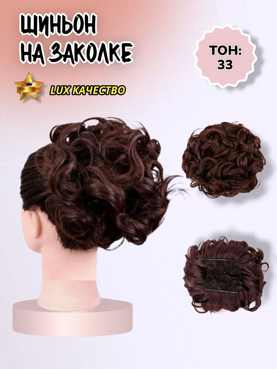 Шиньон накладной для волос на заколках. Шатен 2/33