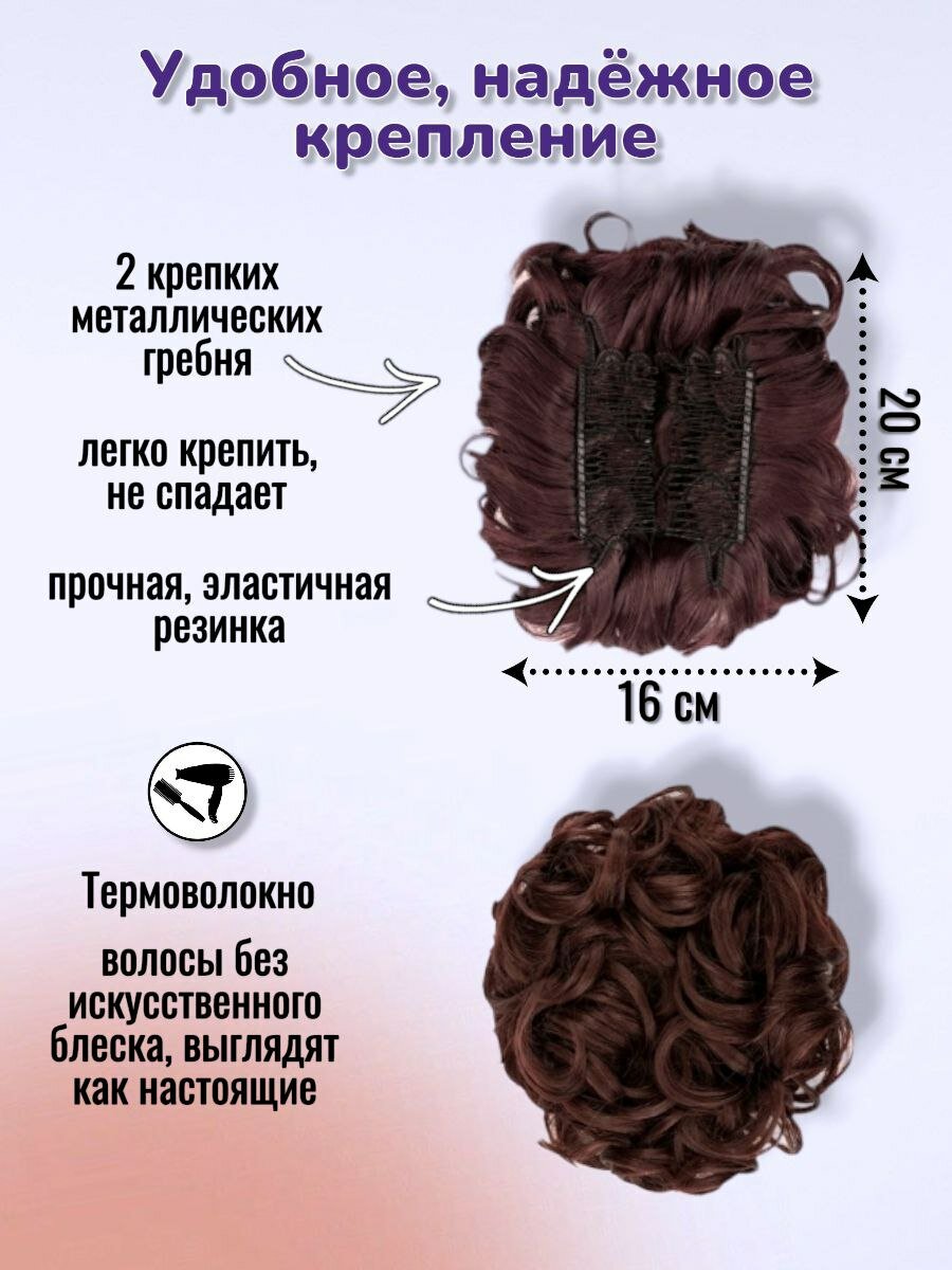 Шиньон накладной для волос на заколках. Коричневый 4/30