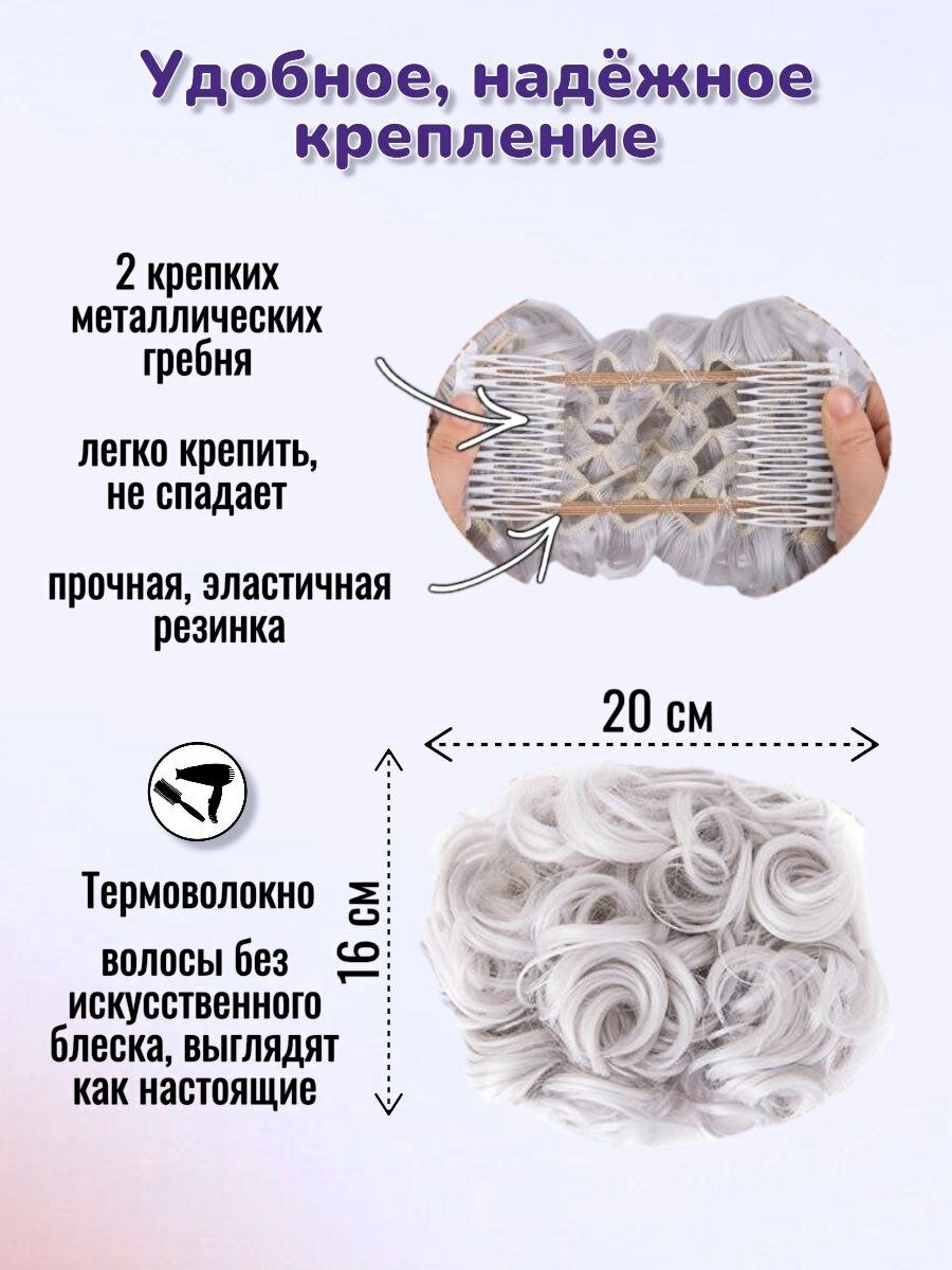 Шиньон накладной для волос на заколках. Седой 171