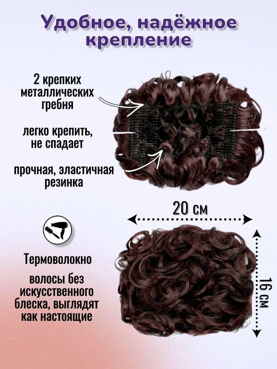 Шиньон накладной для волос на заколках. Коричневый 4/30