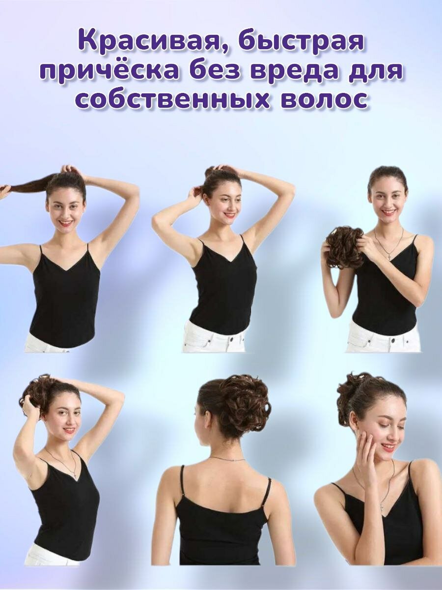 Шиньон накладной для волос на заколках. Коричневый 4/30