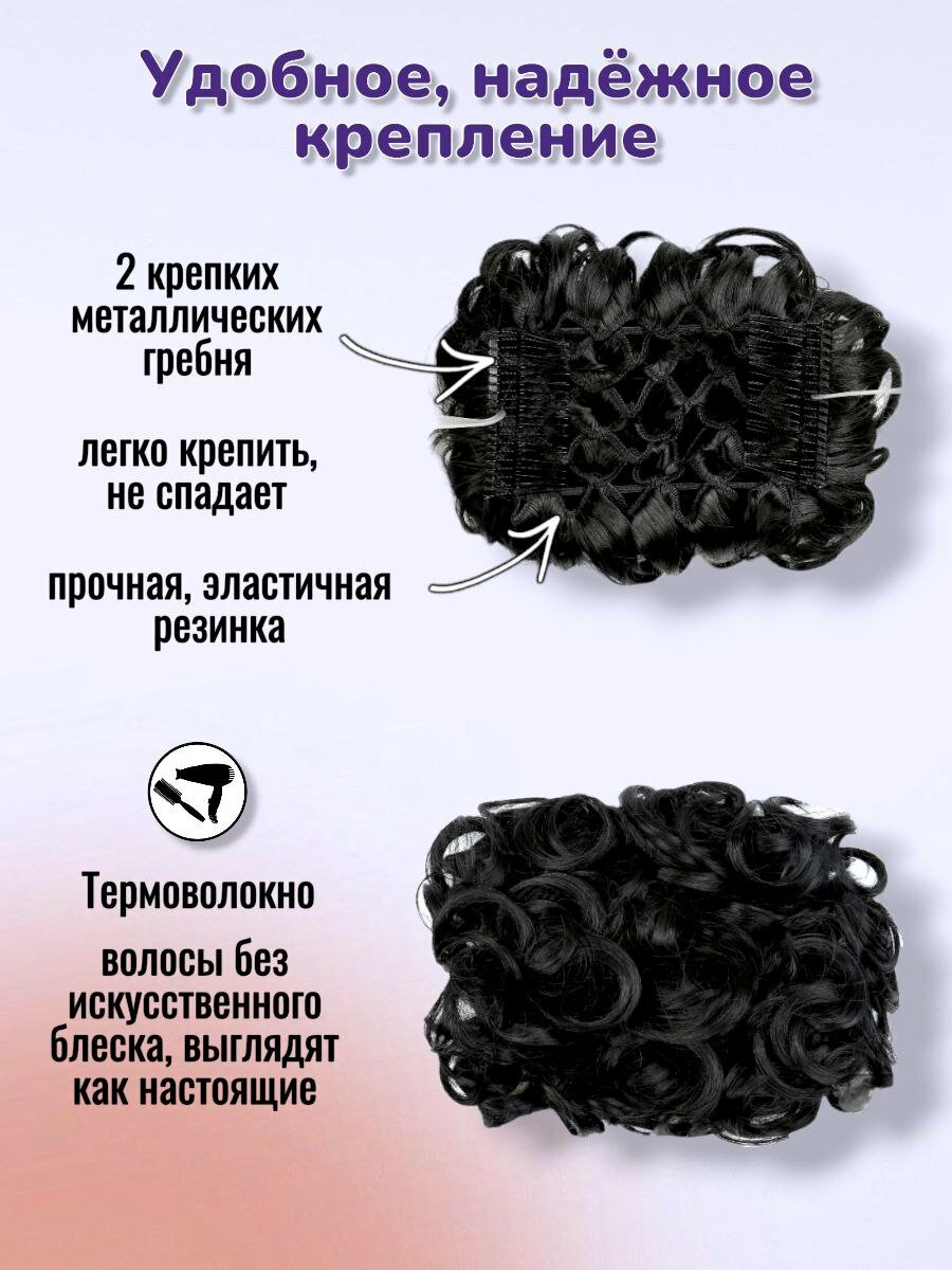 Шиньон накладной для волос на заколках. чёрный 2.0