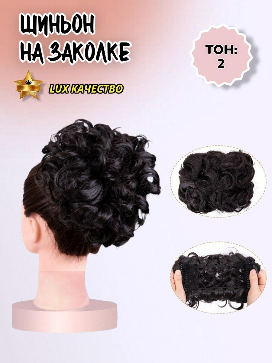 Купить Шиньон накладной для волос на заколках. чёрный 2.0