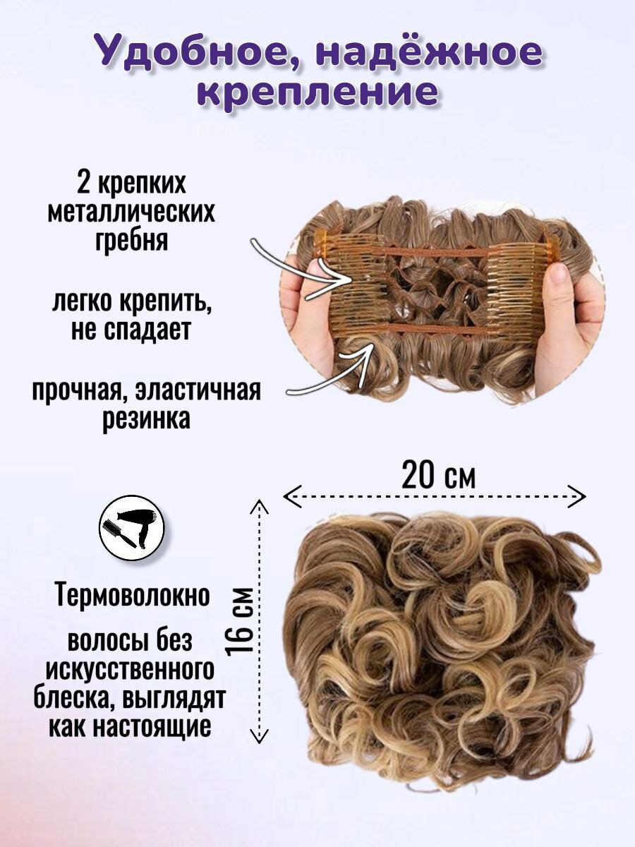 Шиньон накладной для волос на заколках. Блондин мелированный с коричневым
