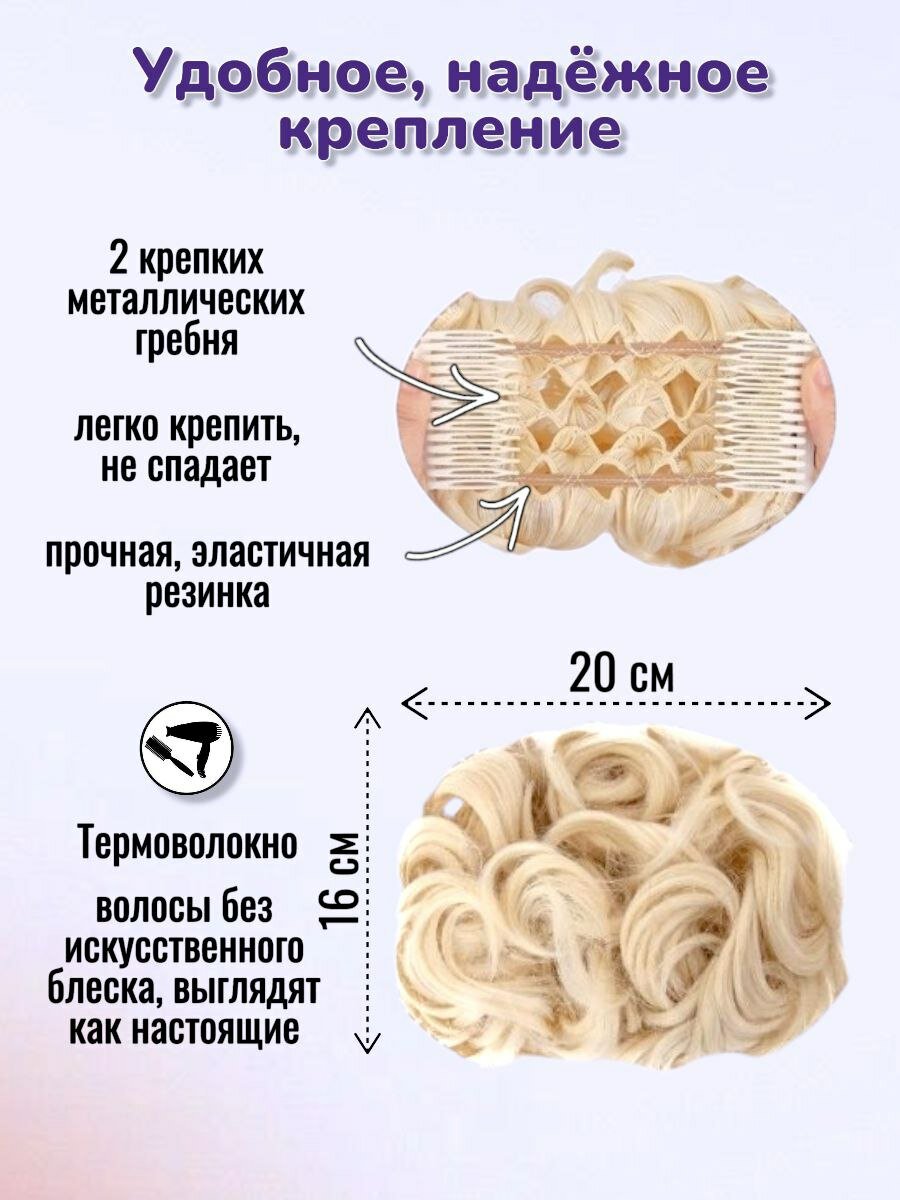 Шиньон накладной для волос на заколках. Блондин 60