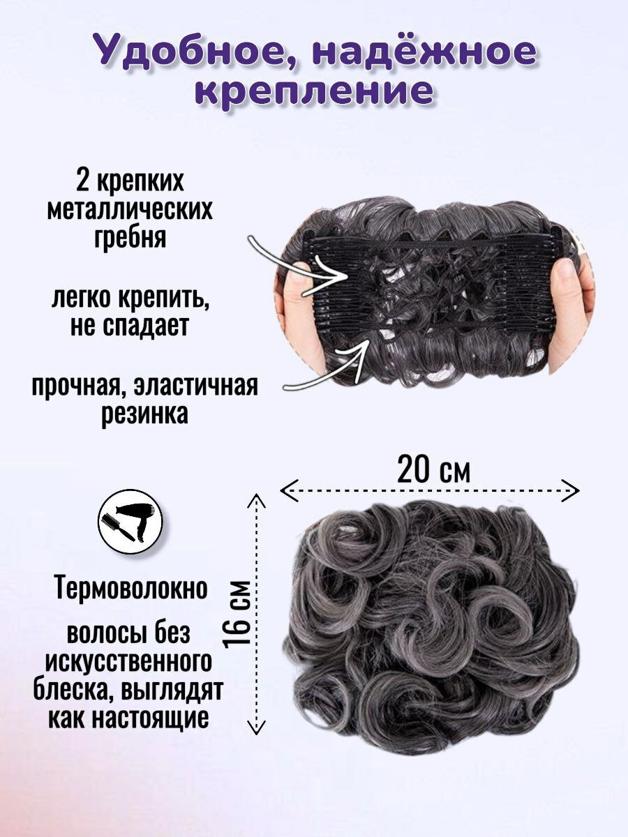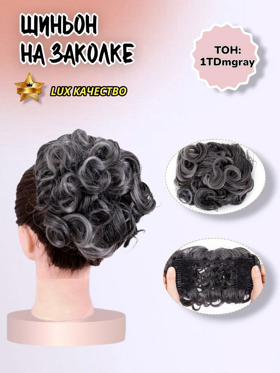 Купить Шиньон накладной для волос на заколках. Темно седой