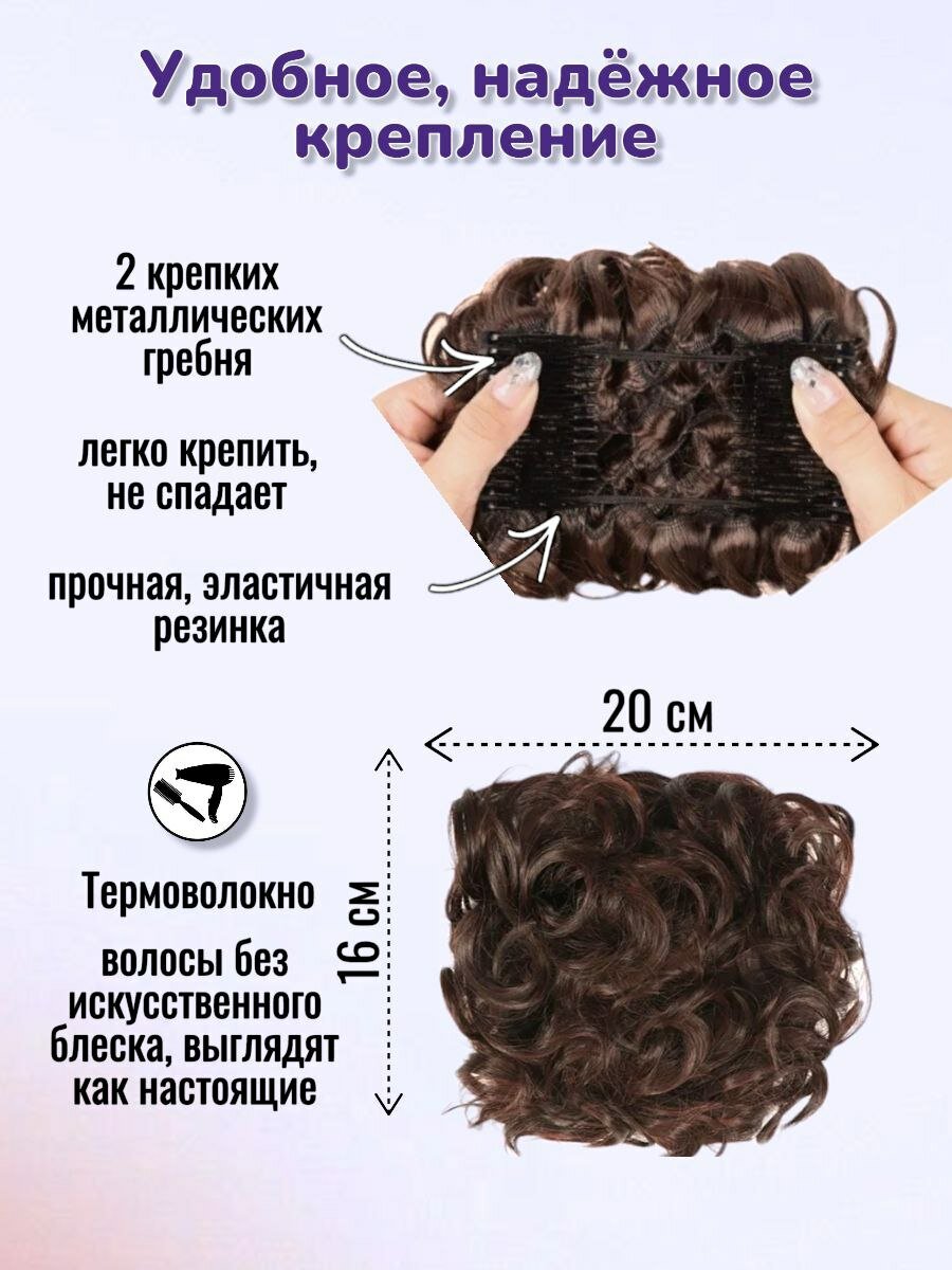 Шиньон накладной для волос на заколках. Коричневый 4/30