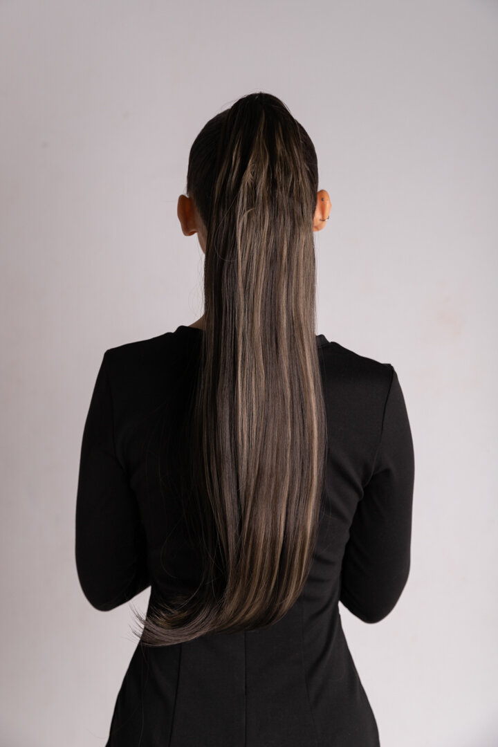 СохранитьХвост-шиньон накладной на крабе для волос, Leona Beauty, темно каштановый с мелированными прядями, 8H18B, термо-канекалон, 70-75 см. интересное: