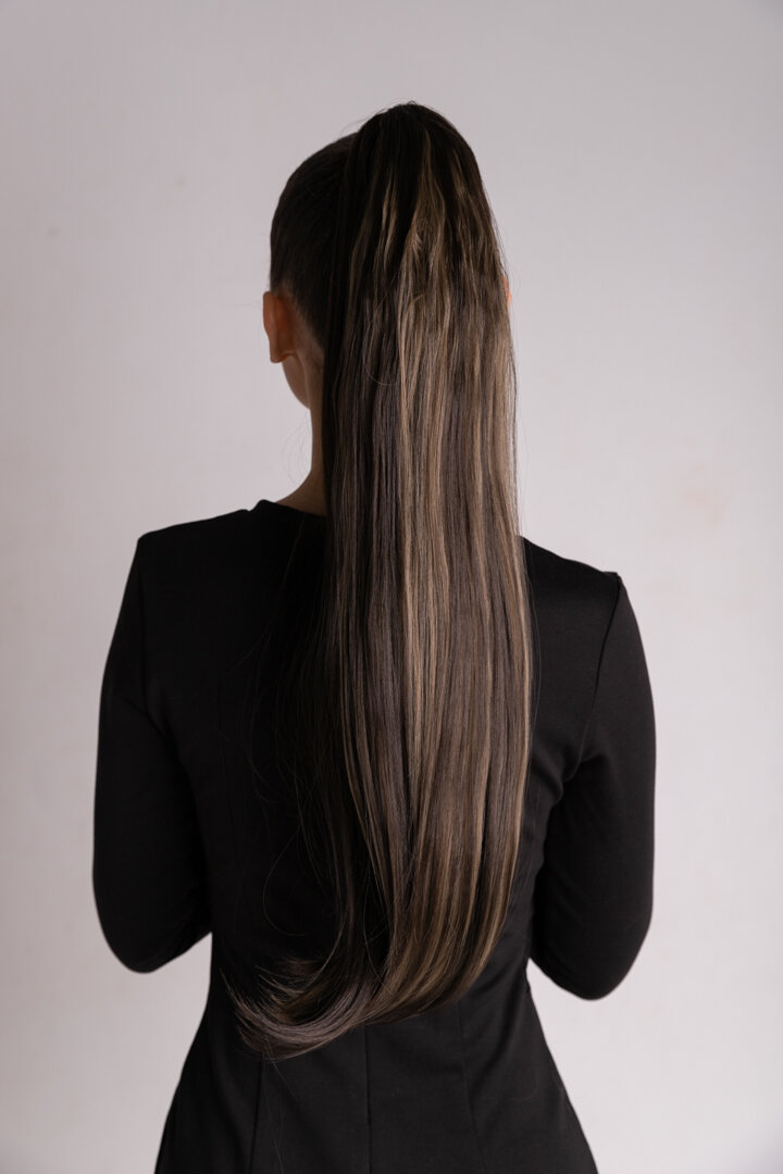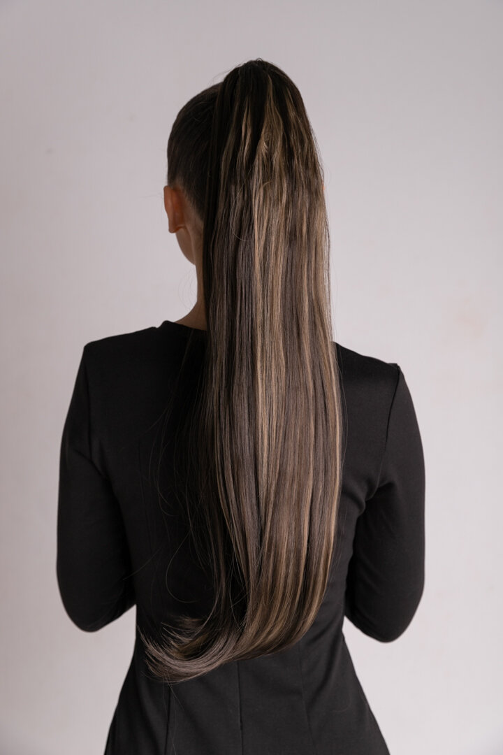 Шиньон накладной хвост на крабе шоколадный накладные волосы 60 см 150гр