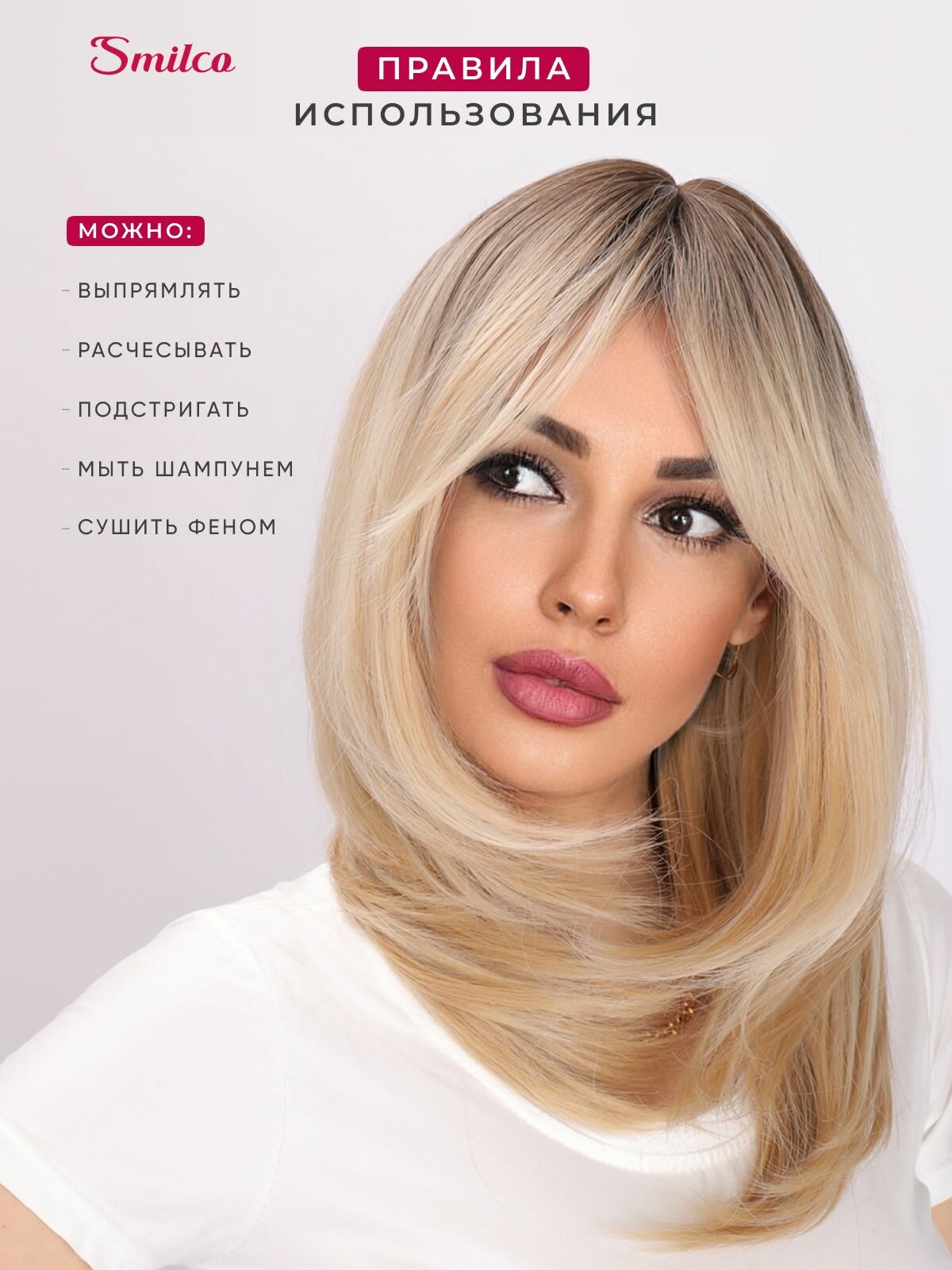 Парик Smilco длинный пшеничный холодный блонд