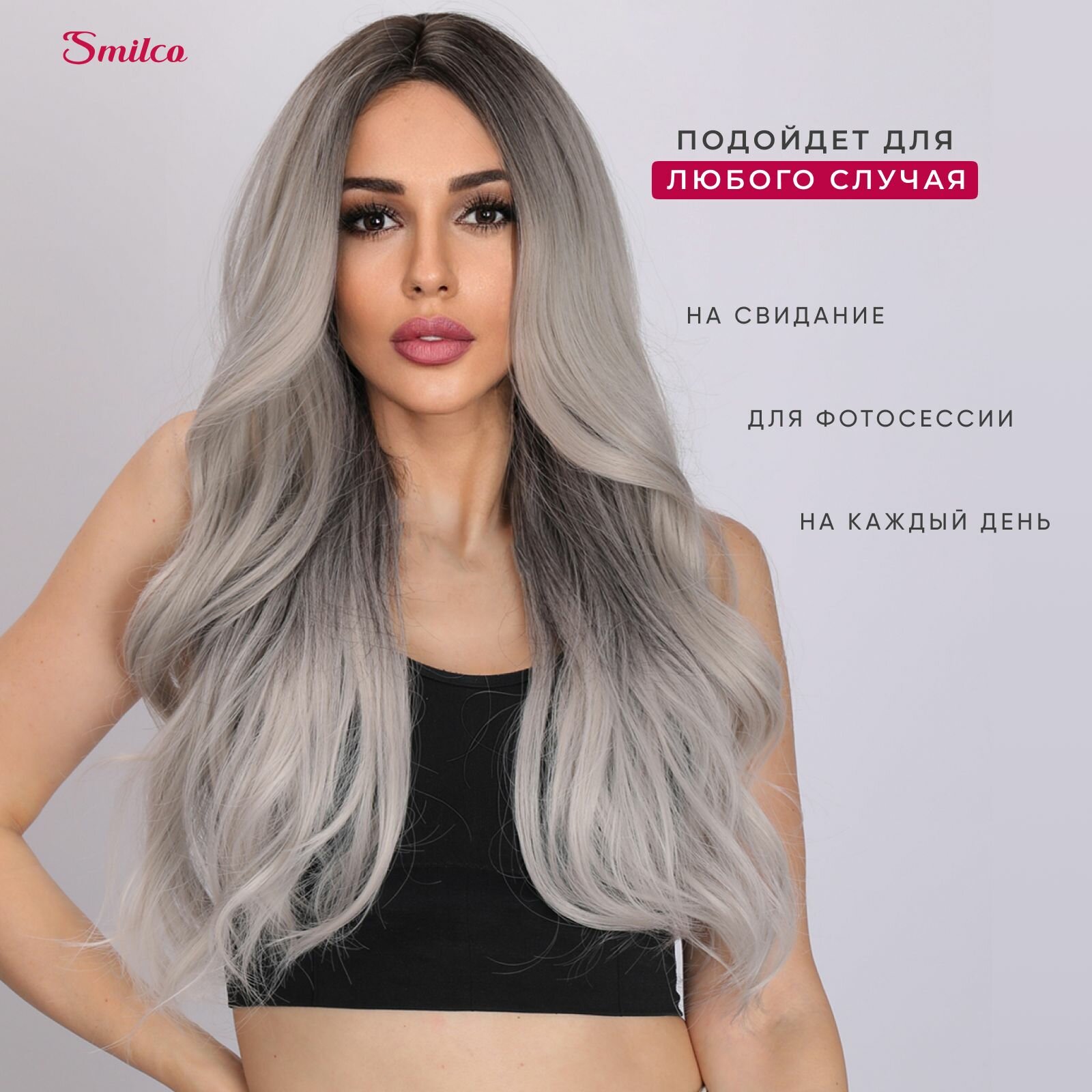 Купить Парик длинный пепельный серый холодный блонд AirTouch Smilco