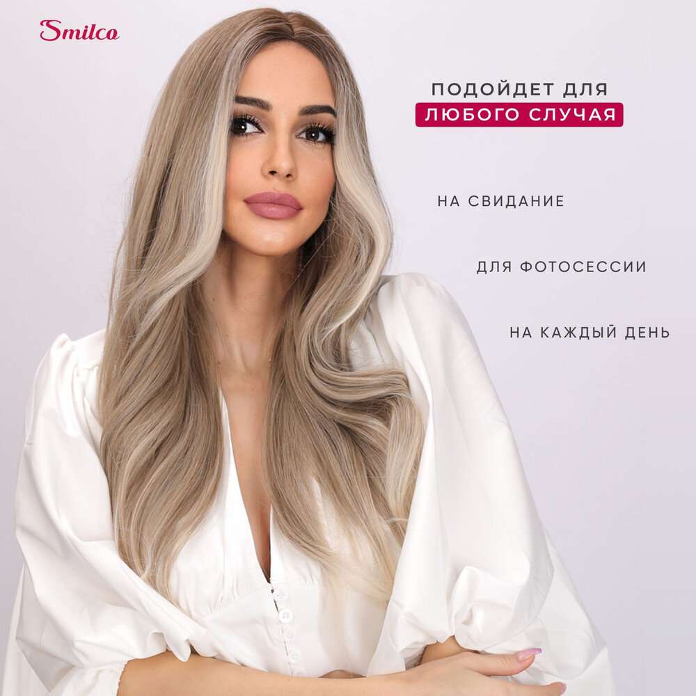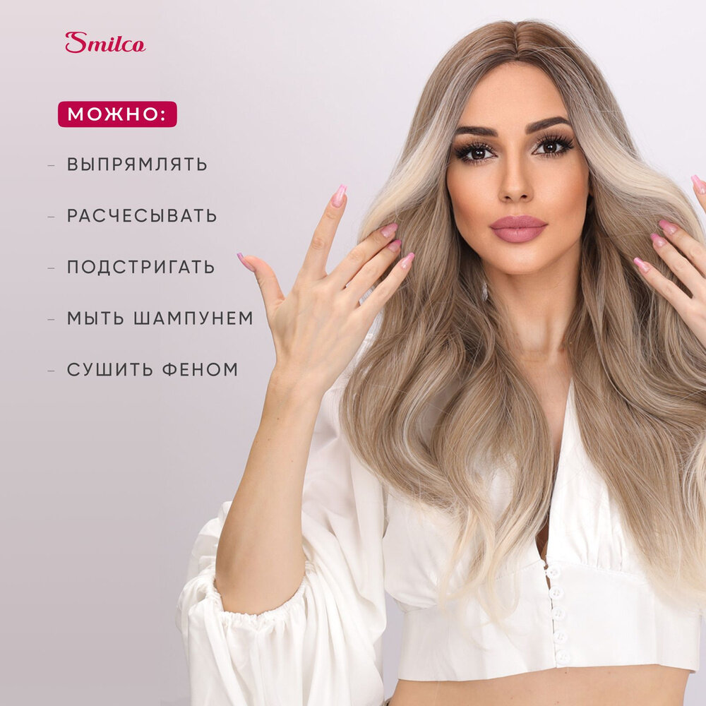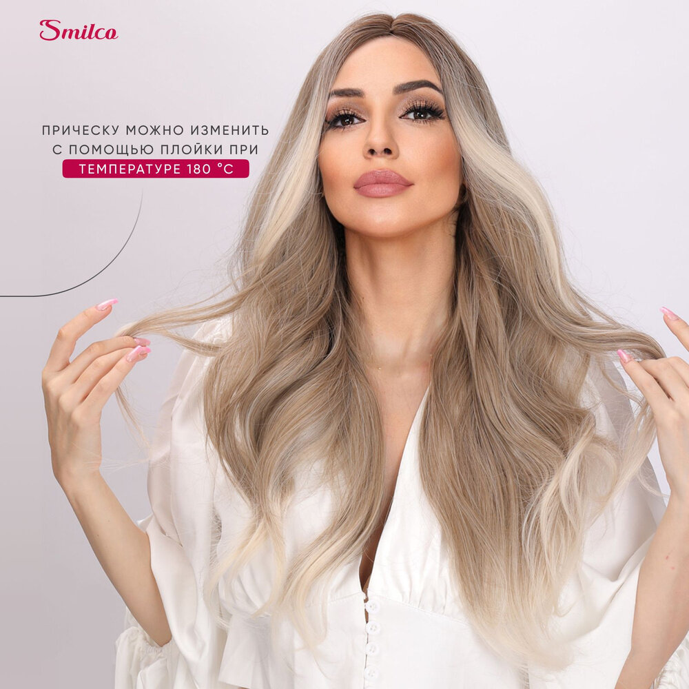 Парик Smilco длинный медово-платиновый блонд шатуш