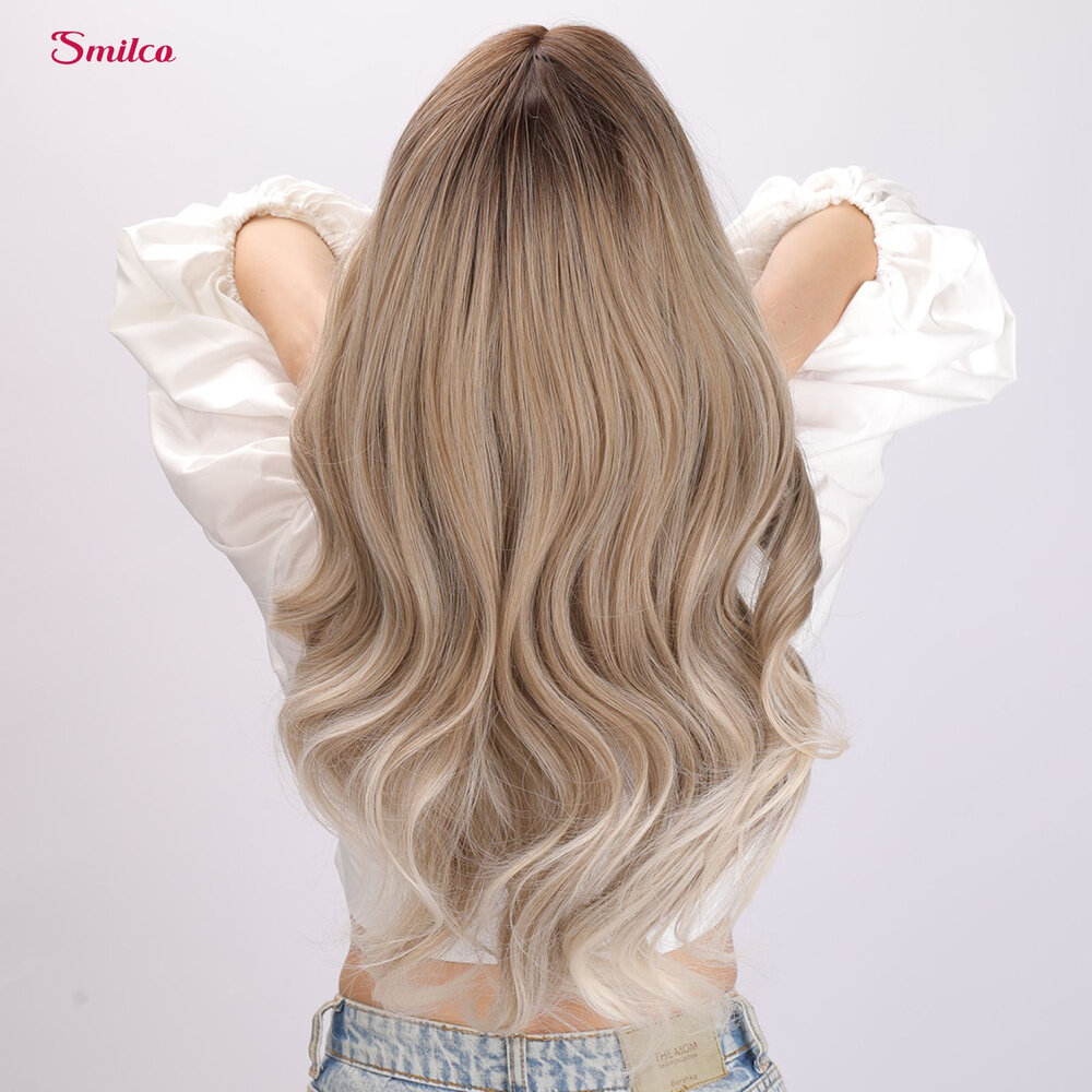 Парик Smilco длинный золотисто пепельный блонд омбре