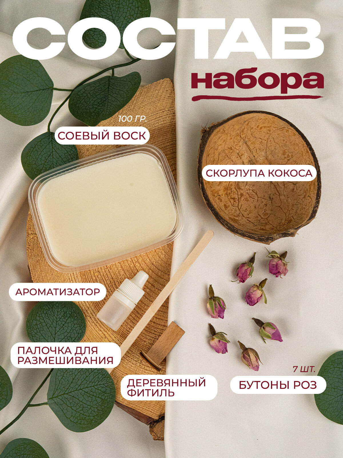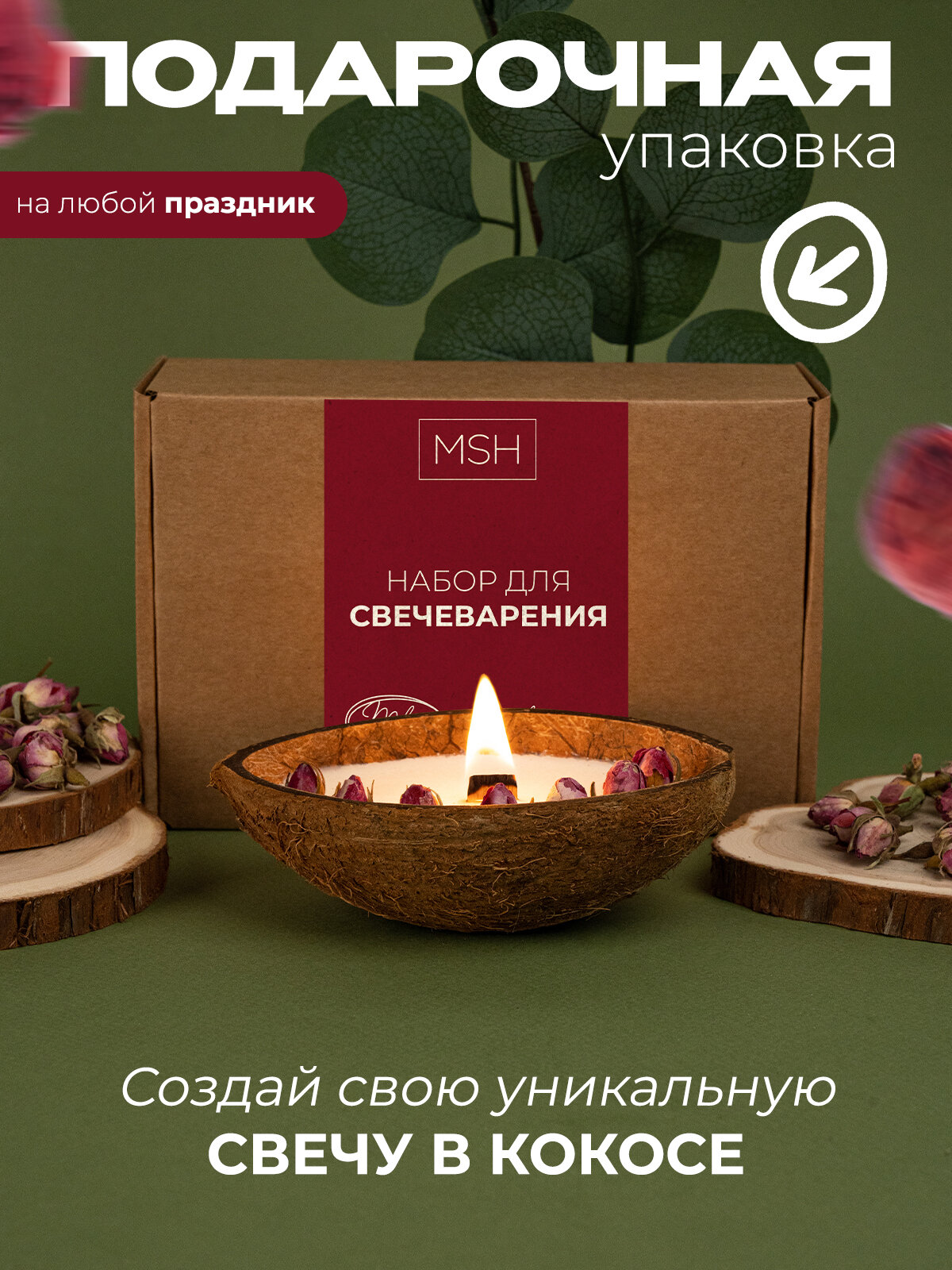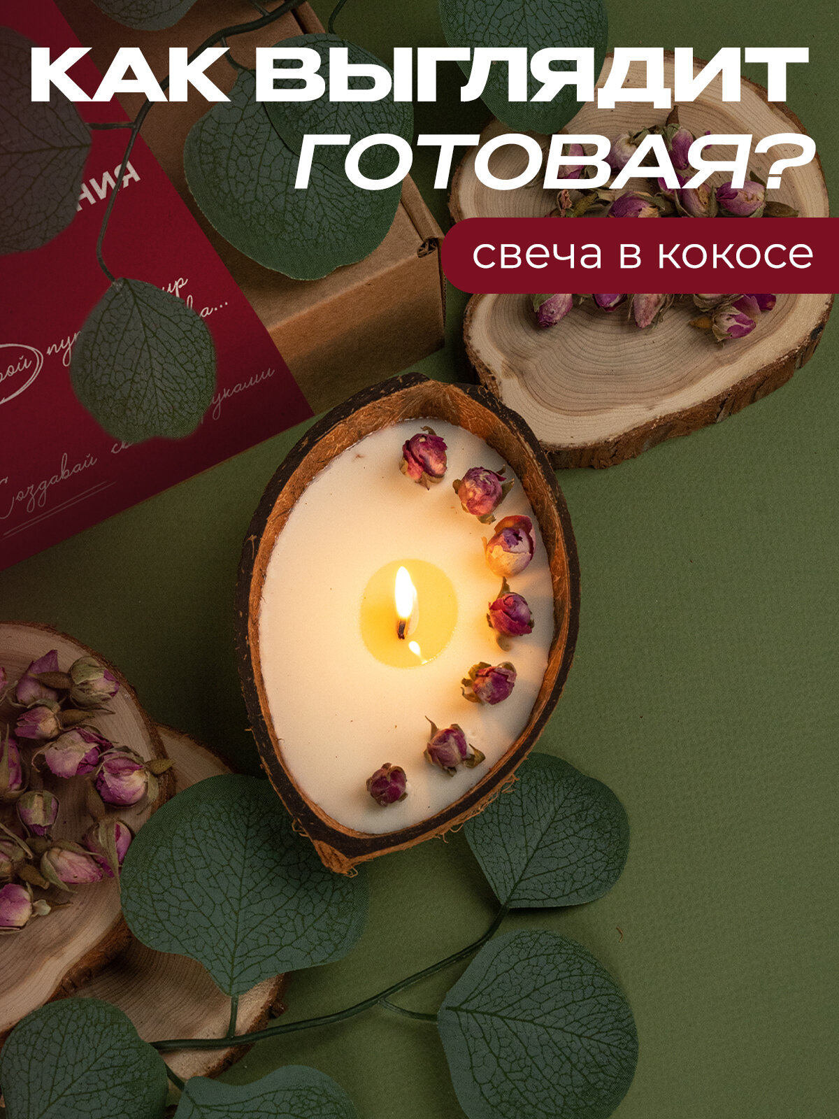 Набор для изготовления свечи в кокосе с сухоцветами Медовые штучки интересное: