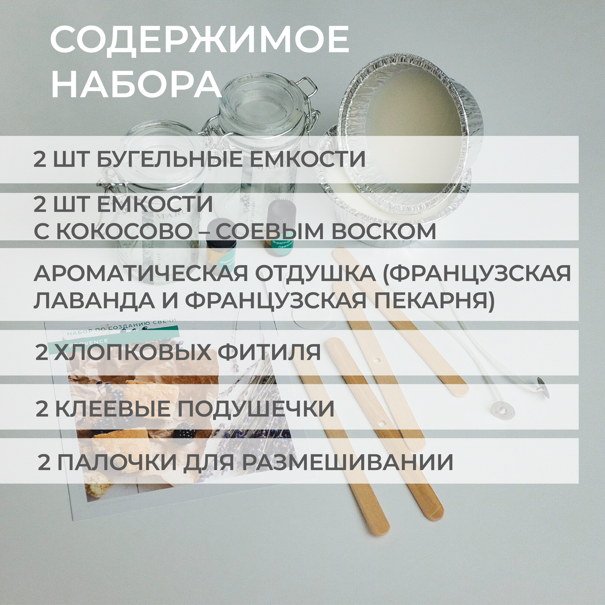 Купить Набор для творчества по изготовлению ароматических свечей с ароматами "Французская лаванда" и "французский хлеб" в стеклянных баночках