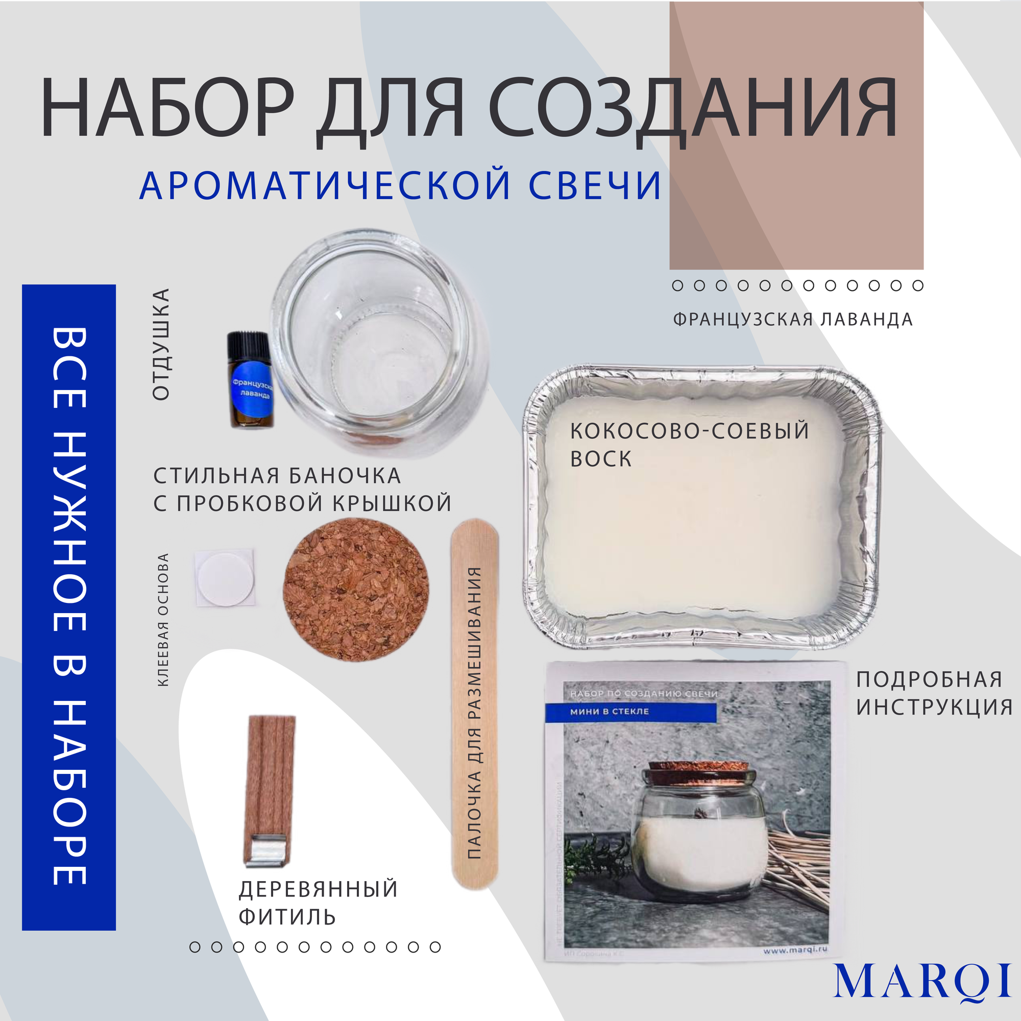 Набор для творчества по изготовлению ароматических свечей с ароматами "Французская лаванда" и "французский хлеб" в стеклянных баночках