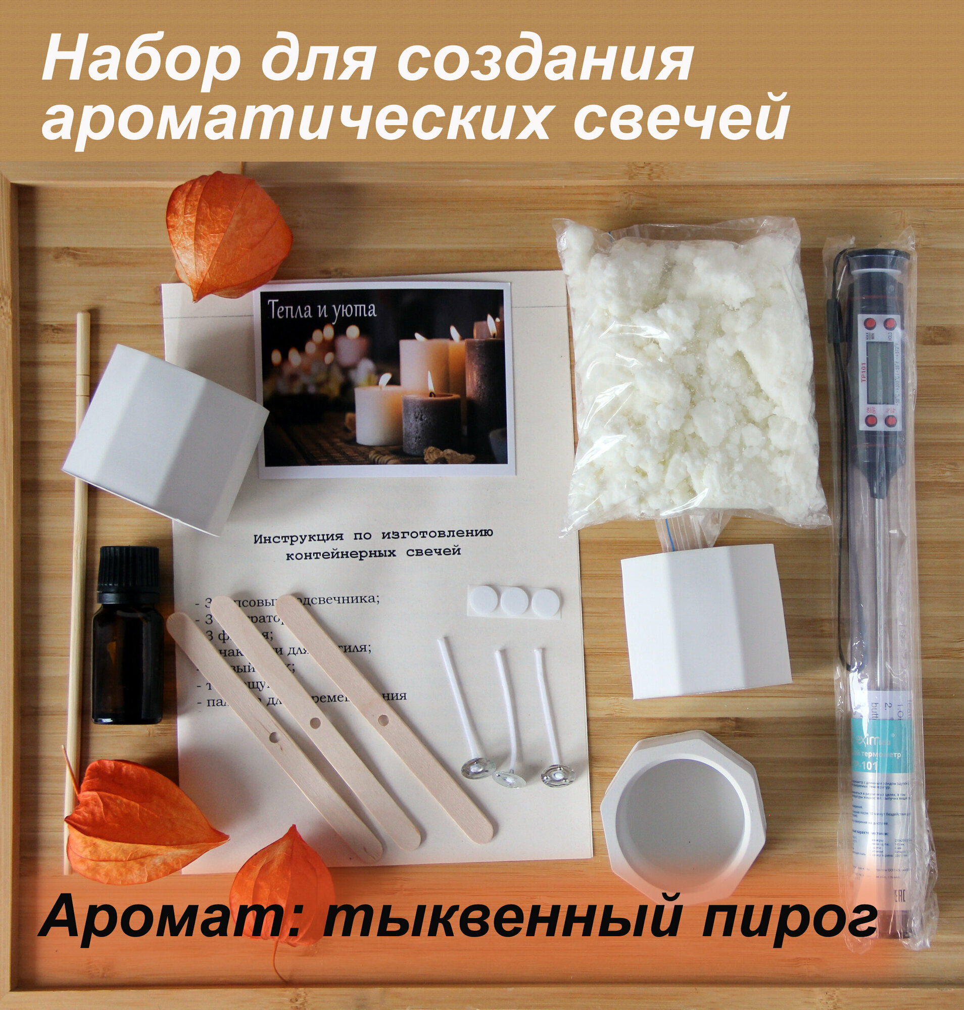 Купить Набор для создания свечей: термощуп, воск, фитили, аромаотдушка