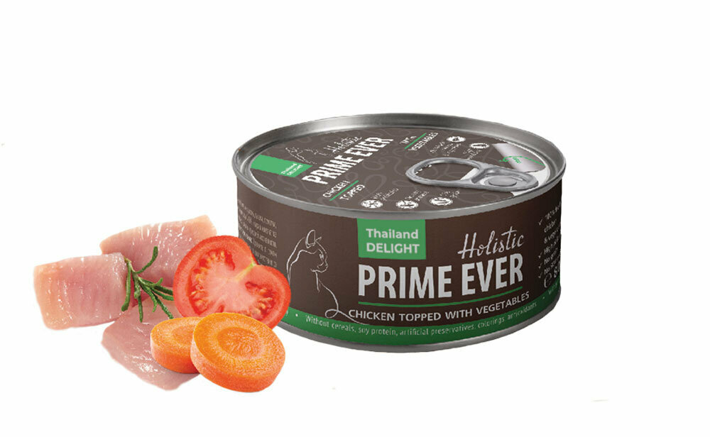 Влажный корм для кошек, цыпленок с овощами в желе, холистик, Prime Ever, упаковка 24 шт х 80 г
