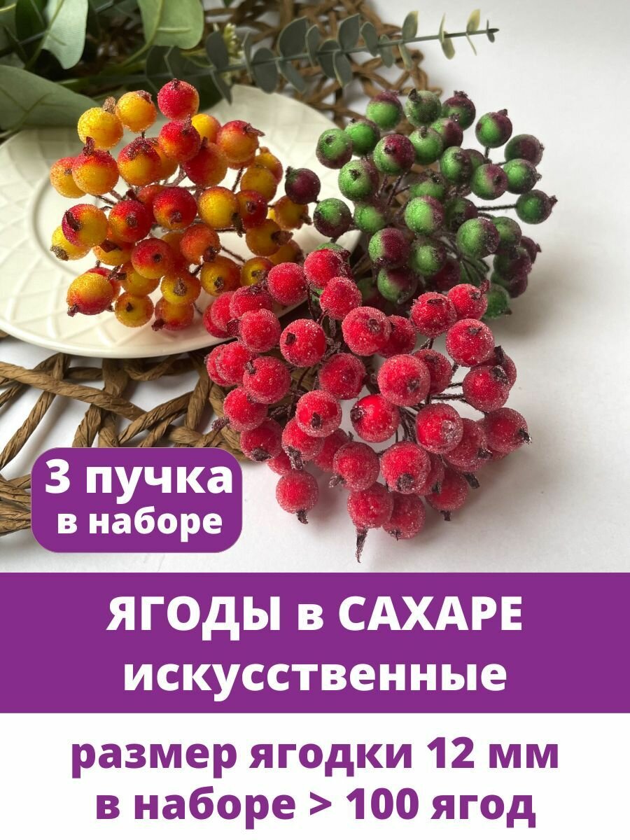 Ягоды Сахарные декоративные, Красные, набор 3 пучка (примерно 120 ягодок)