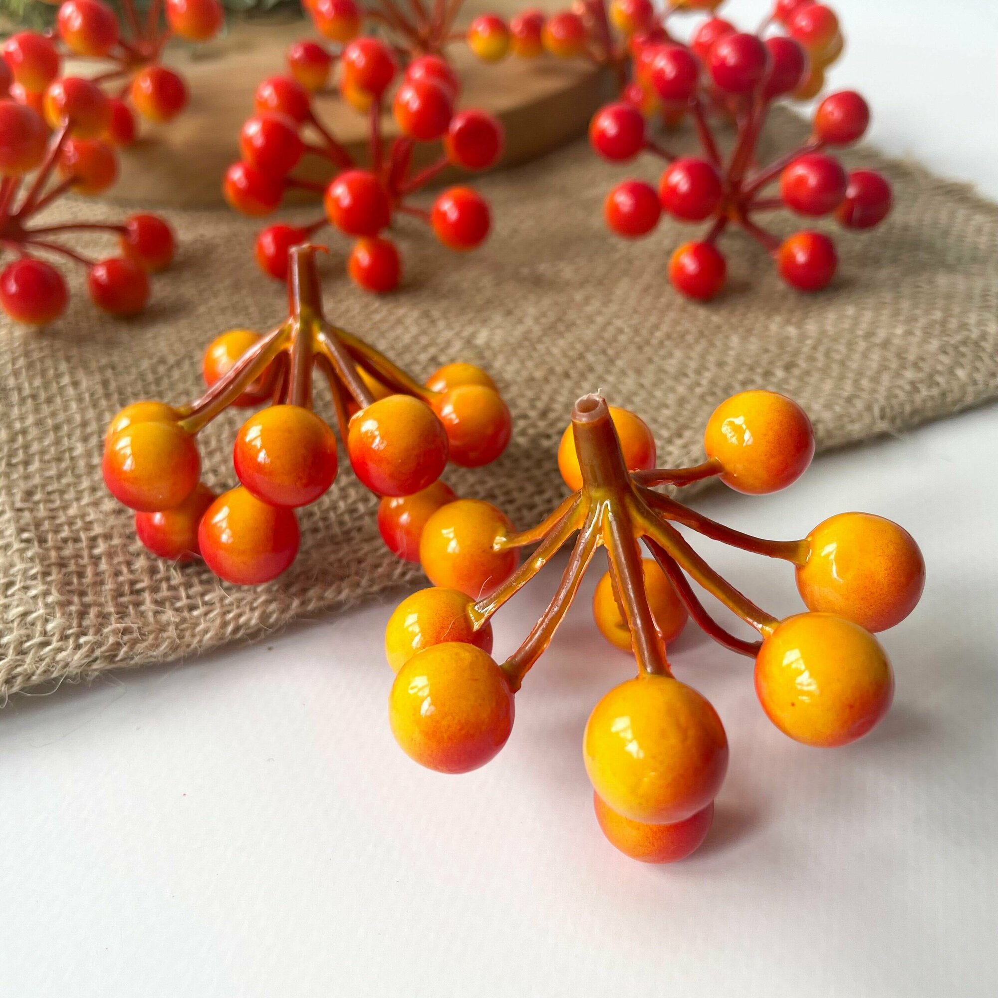 СохранитьЯгоды рябины, Желто-оранжевые искусственные на ветке, гроздь 5 см, набор 10 шт. интересное: