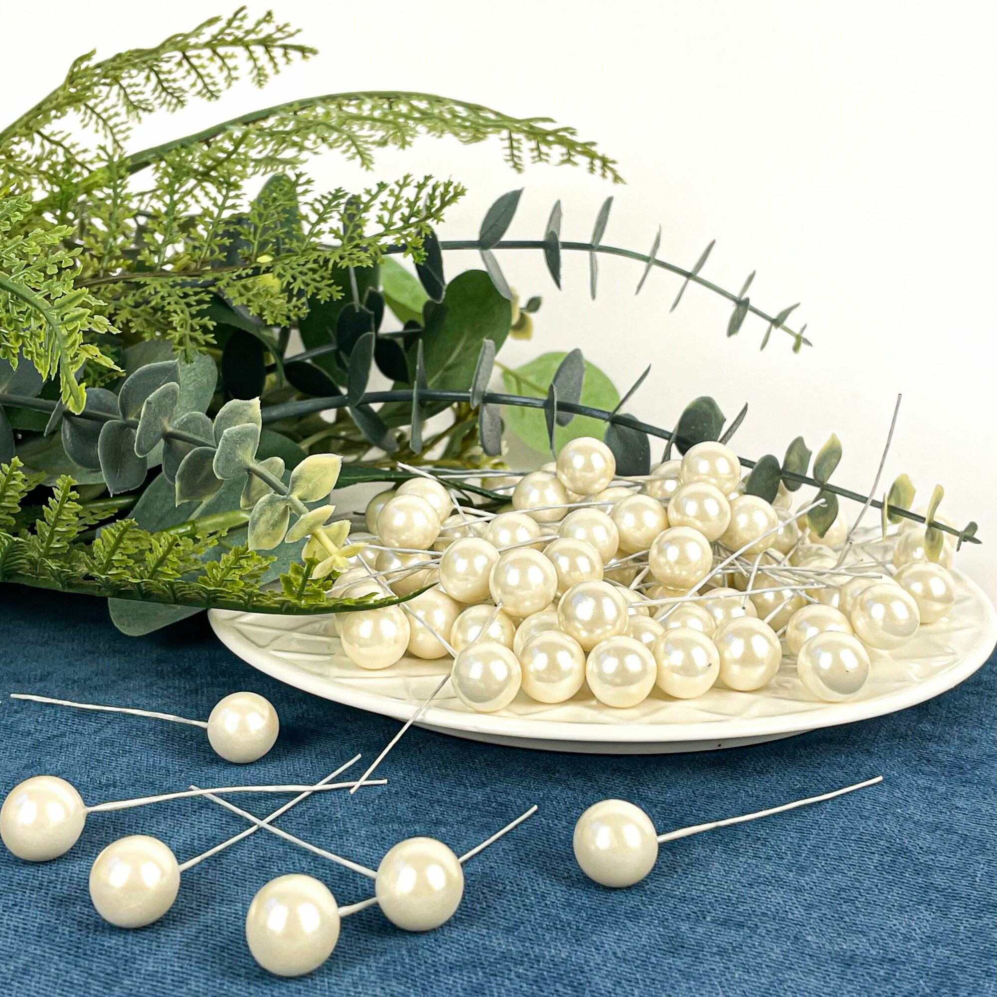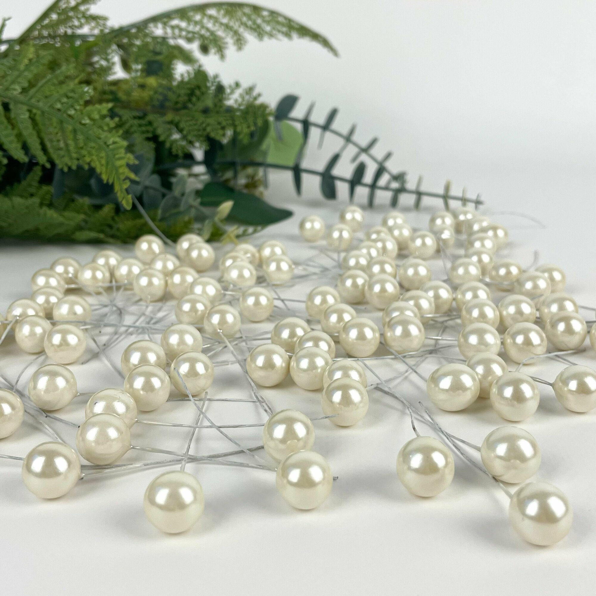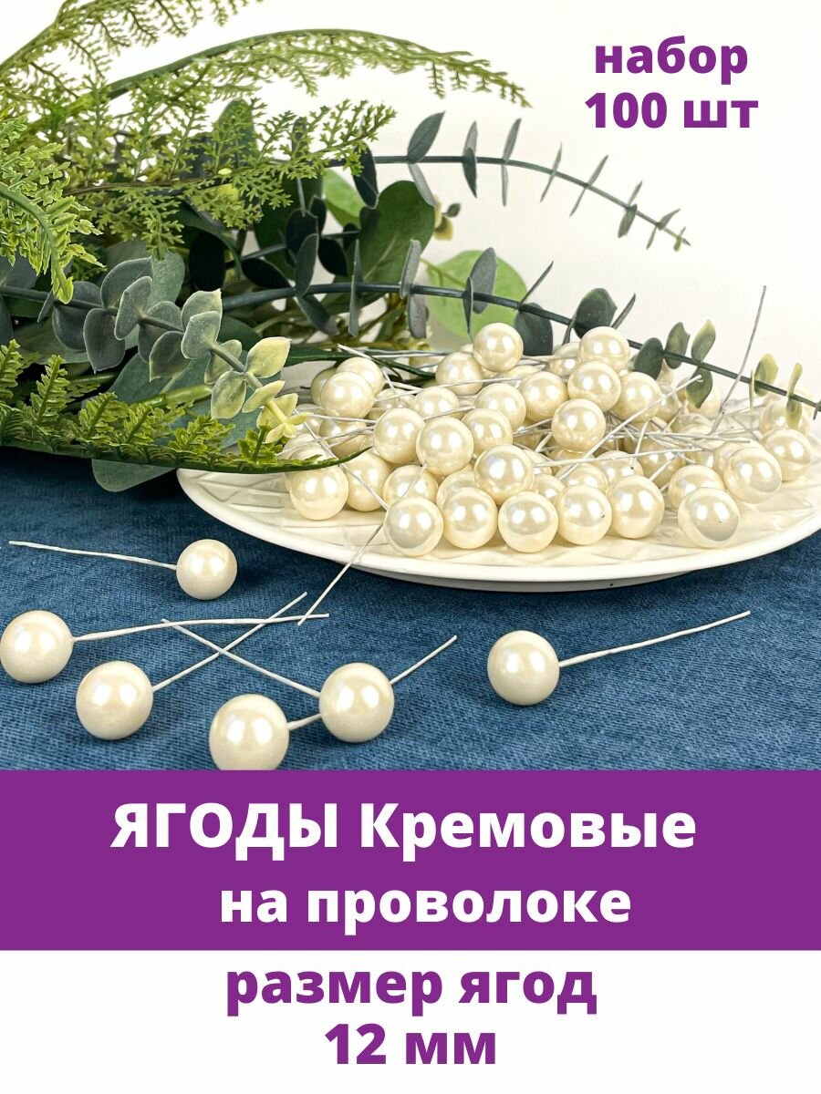 Купить Ягоды на проволоке Белые перламутровые, размер 12 мм, набор 100 шт