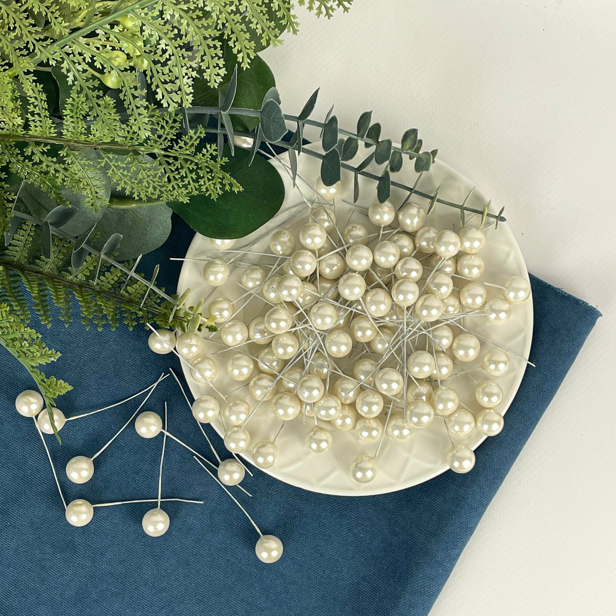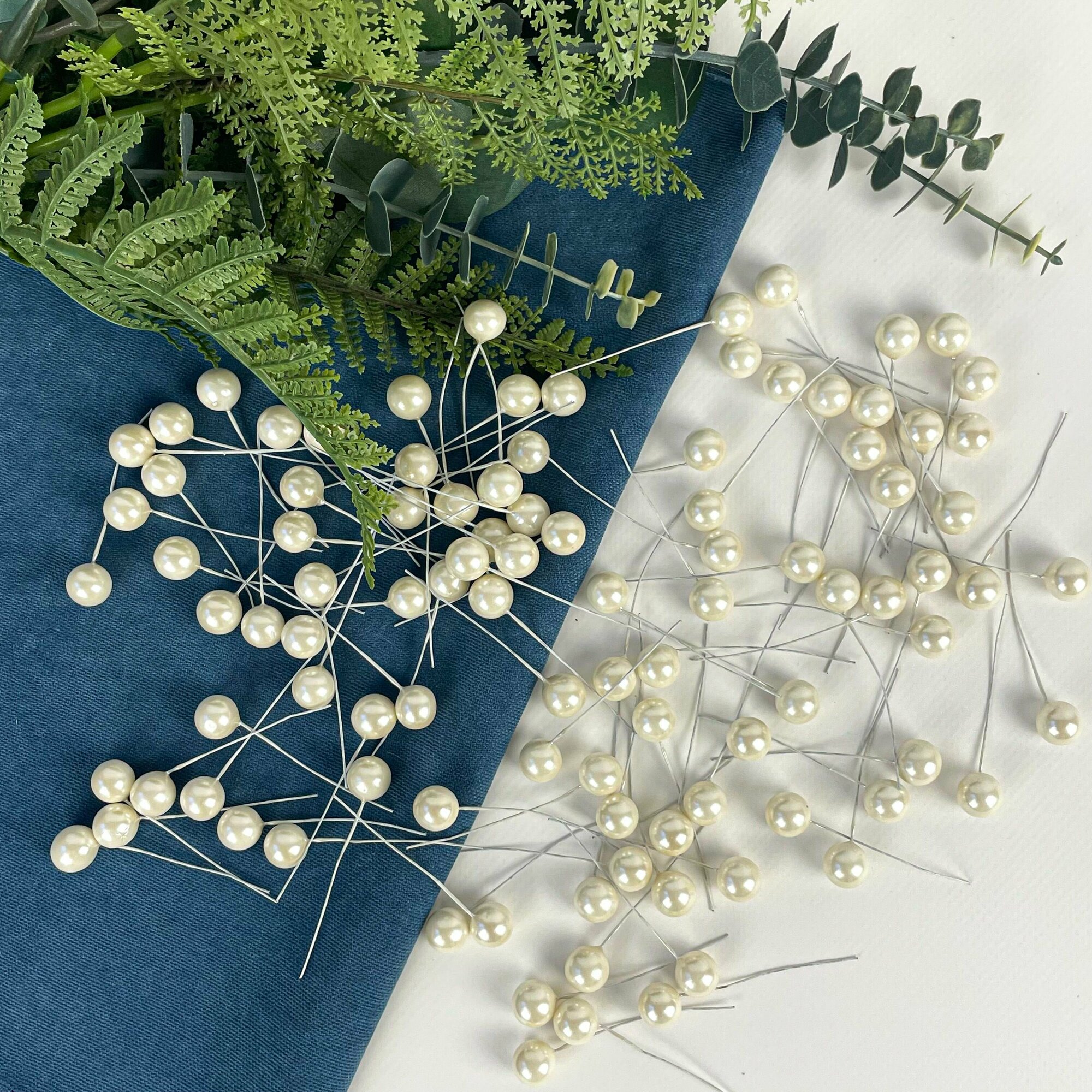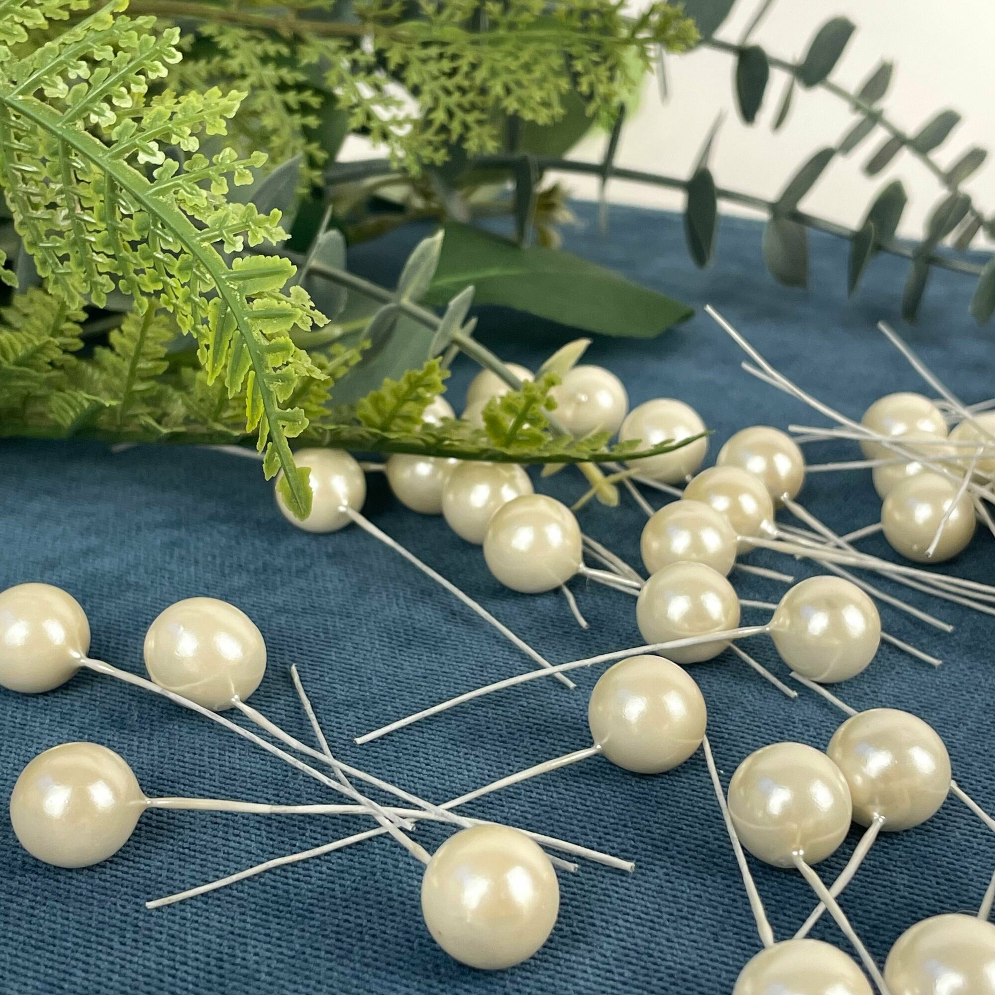 Купить Ягоды на проволоке Белые перламутровые, размер 12 мм, набор 100 шт