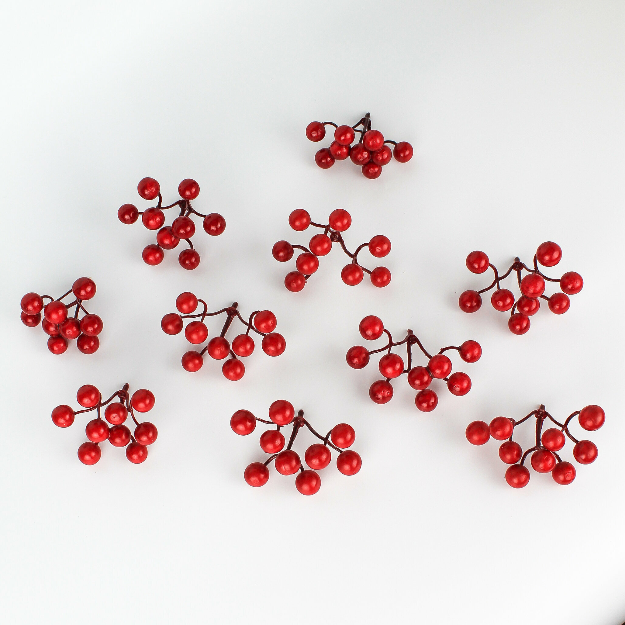 Ягоды красные искусственные на ветке, гроздь 11 см, 12-15 мм, набор 10 шт.