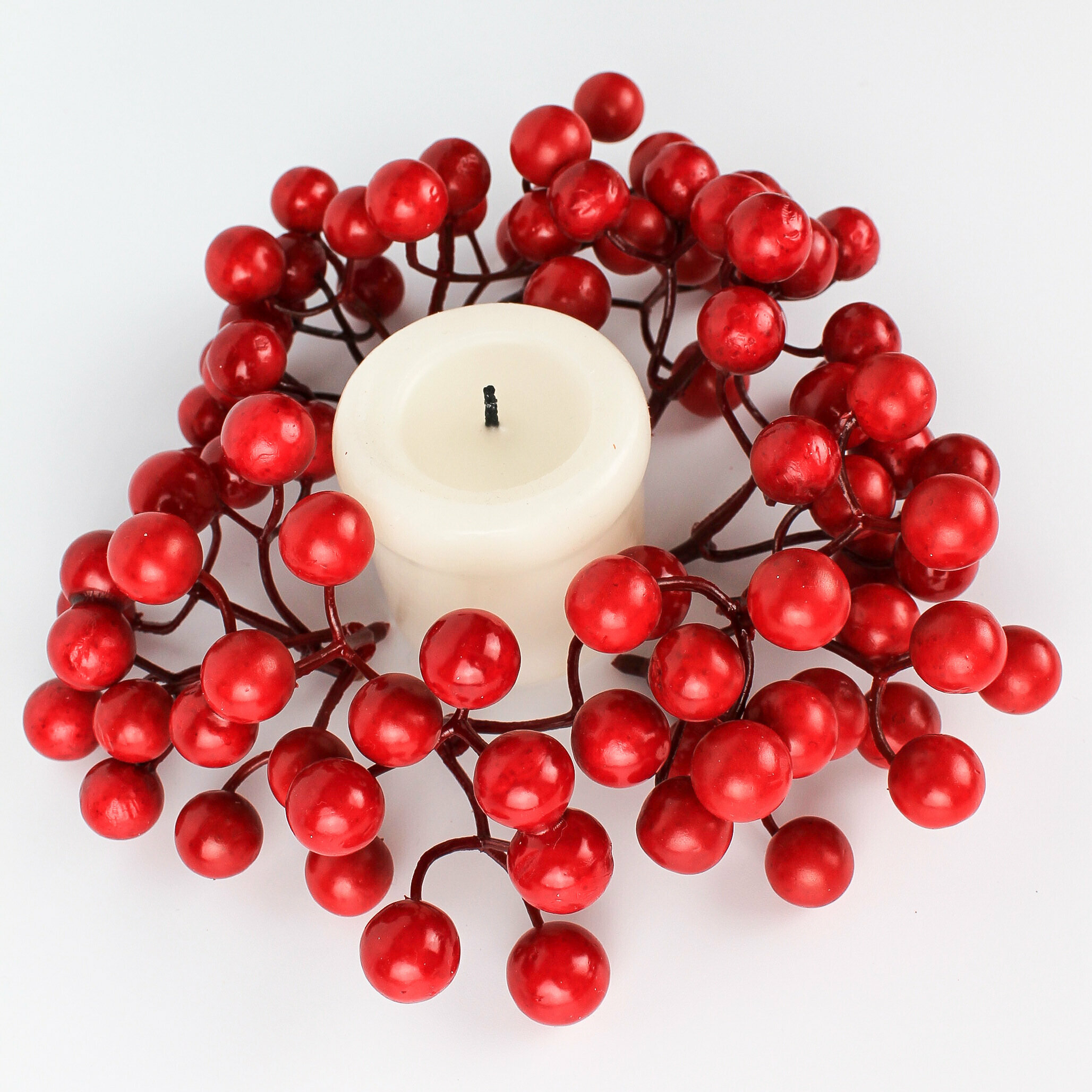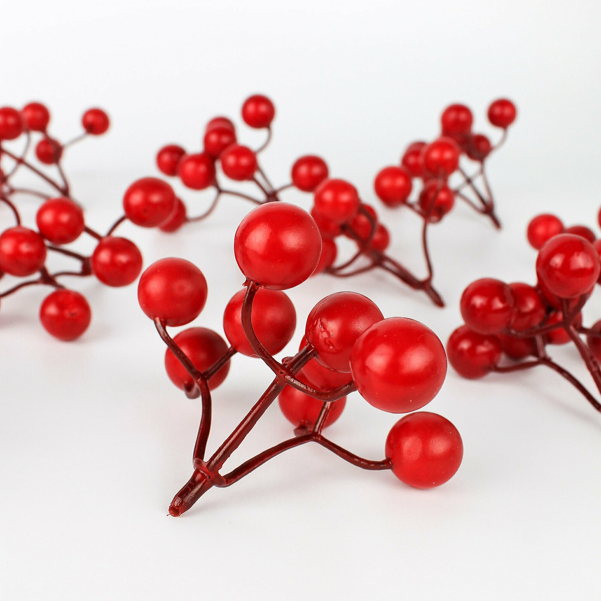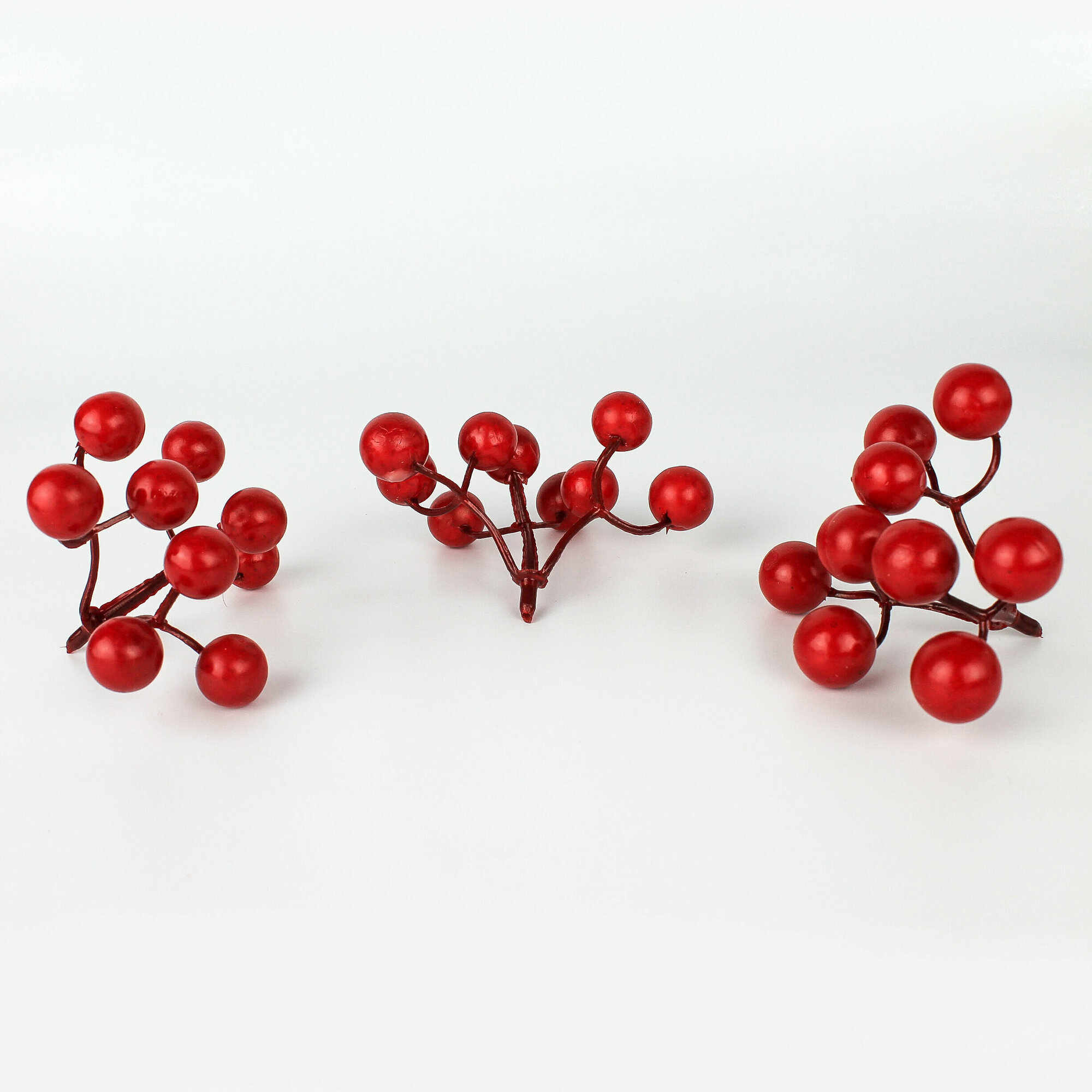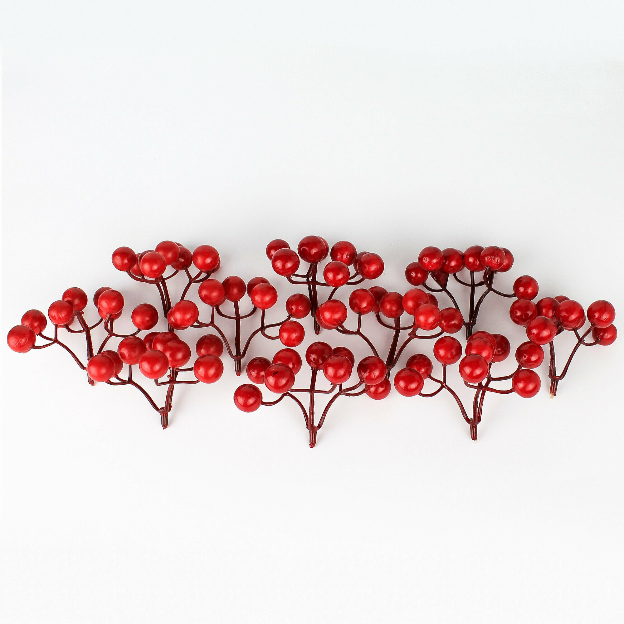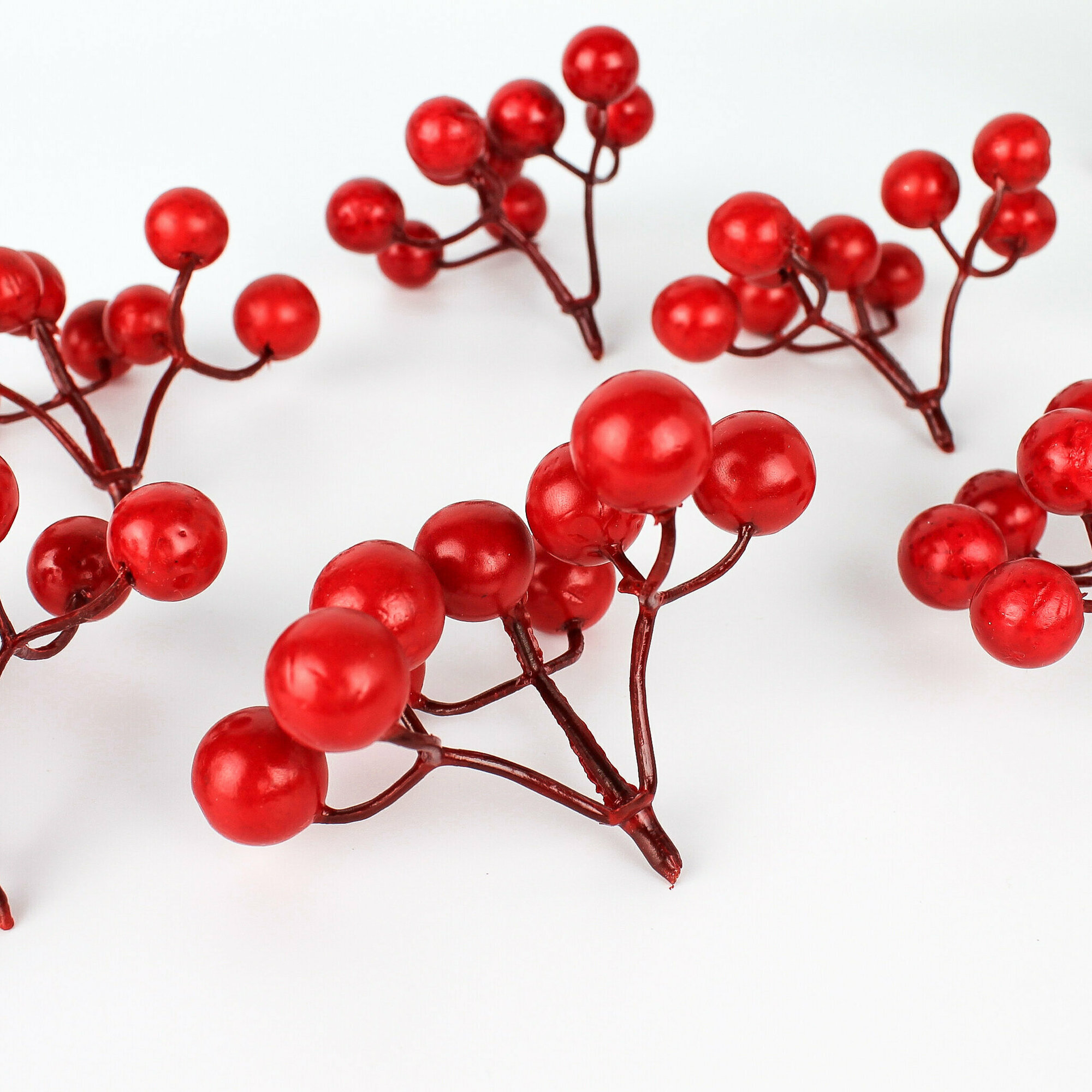 Ягоды красные искусственные, на ветке 5 ягод 10-13 мм, набор 20 шт.
